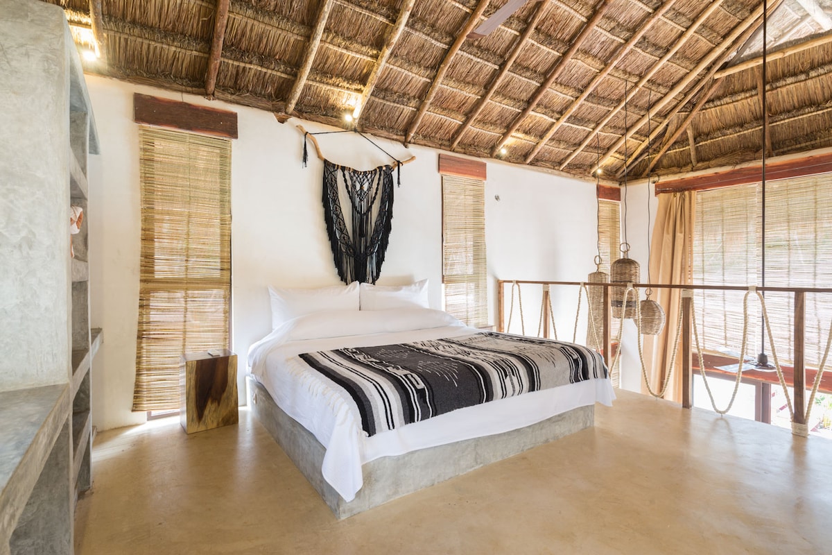Casita Corazón Dosは、ソリマン湾にある2ベッドルームのボヘミアンバンガローで、2階にはキングスイート、1階にはクイーンベッドルームがあります。4名様が宿泊でき、日陰のある専用テラス、共有プール、毎日のハウスキーピング、穏やかなターコイズブルーの海を探索するためのカヤックをご用意しています。大人数のグループの場合は、隣接するカシータもレンタルできます。