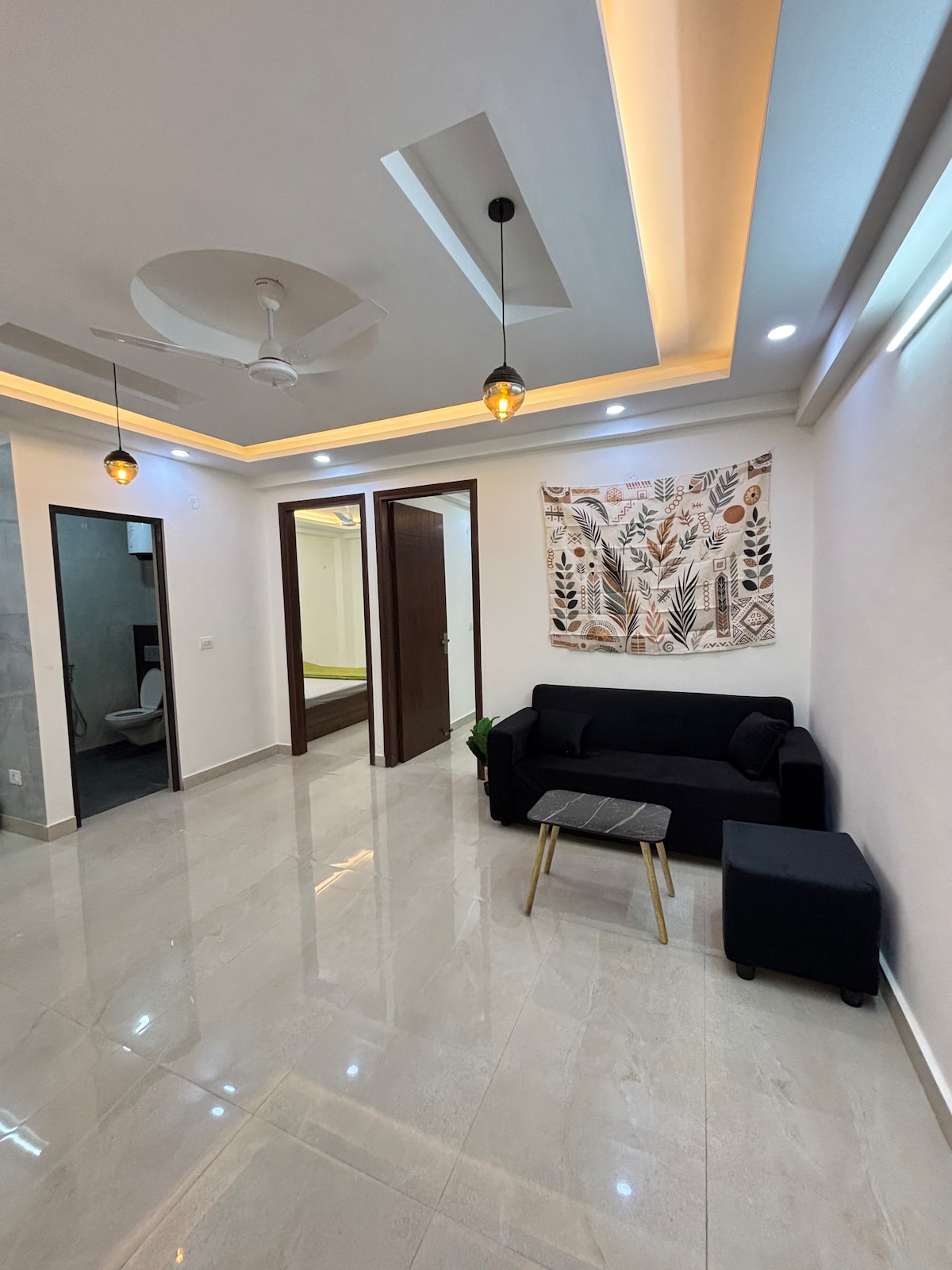 こちらの静かでおしゃれなお部屋で、のんびりとおくつろぎください。モダンな生活のためにデザインされたこのスマートアパートメントは、ニューデリーで最も平和な場所の1つです。グレーター・カイラシュ1 (南デリー)の中心部に位置し、休暇でデリーを訪れる方や在宅勤務をする予定の方に最適です。私たちは、ホスティングが大好きなカップルです。このスペースには専用の玄関とキッチンがあり、大型スマートテレビとワークデスクが備わっています。インターネット速度は50 mbps以上で、共用エリアにはRoと庭があります。