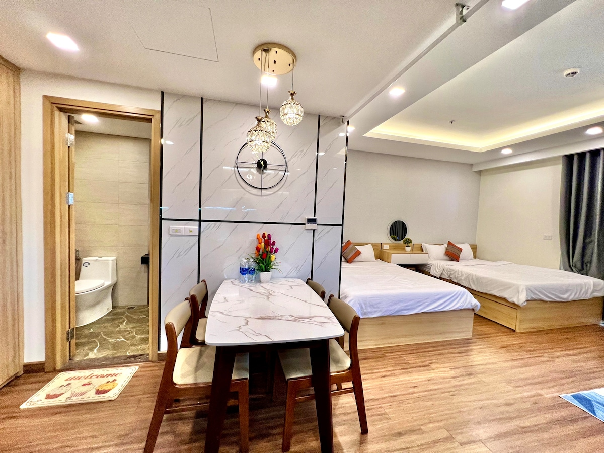 🌊TMS Quy Nhon - Hupasearestの高層マンションのバルコニーから、波の音と素晴らしい海の景色に目覚めましょう! このモダンで豪華なワンルームアパートには、海を一望できる専用バルコニーがあり、ご家族連れ、少人数グループ、またはご友人とのご旅行に最適です。 • クイーンサイズベッド2台 • スマートテレビ、高速Wi-Fi、エアコン、洗濯機 • お湯、洗面用具、ヘアドライヤーを備えた専用バスルーム •冷蔵庫、ケトル、基本的な調理器具を備えた簡易キッチン