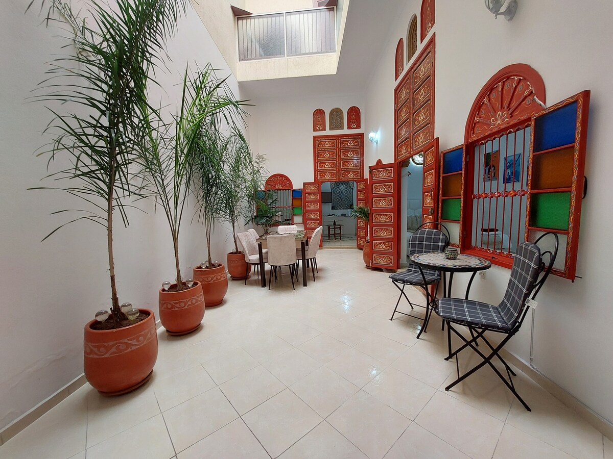 サレのメディナに位置する伝統的なリヤド(地元の生活に浸る)とても静か、近くに警備付き駐車場、無料のヨーロッパのチャンネル付きテレビ、マリーナやサレのビーチ、レストラン、ラバトから徒歩圏内。設備の整ったキッチン、洗濯機、食器洗い機、テレビ、食器、シーツ、タオル、ベビーベッド、テラス、小さなオーシャンビュー、路面電車の駅の近く。