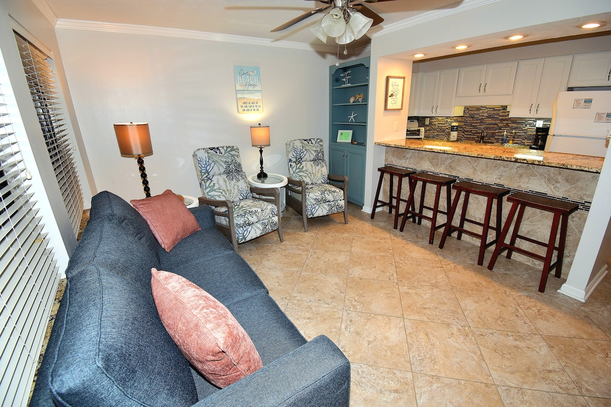便利なサンスウェプト403をお楽しみいただけます。 プールの隣にある1階のコンドミニアムで、玄関のすぐ外に駐車場があります。 ビーチへのアクセスは、複合施設の南側にあります。 このコンドミニアムには、寝室にキングサイズのベッド1台、必需品を備えたキッチン、リビングルームには2名様が宿泊可能なソファーベッドがあります。 リビングルームとベッドルームにはテレビがあり、基本的なケーブルテレビが付いています。 洗濯機と乾燥機があります。 ワイヤレスインターネットも含まれています。