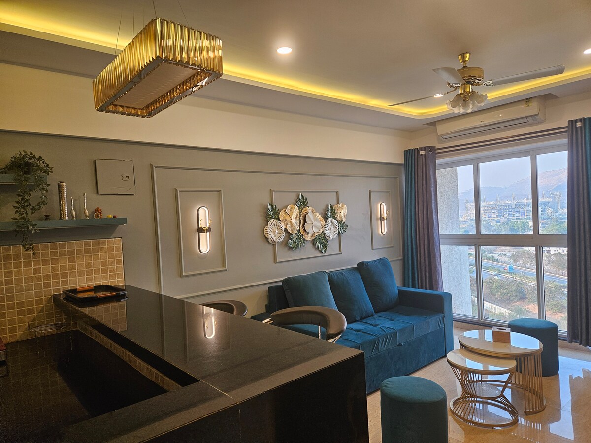 プネーで最も高級なコミュニティのひとつにあるこちらのプライベートスタジオに滞在しましょう。Lodha Belmondoへようこそ。快適さ、利便性、上品さが完璧に調和した静かな空間で、贅沢さの本質を体験してください。 雄大なサヒヤドリ山脈、風光明媚なムンバイ・プネ高速道路、象徴的なガフンジ・クリケットスタジアムを見渡せる、上品にデザインされたこの家は、ロマンチックな逃避行、平和な在宅勤務の隠れ家、またはムンバイとプネの近くでの週末の休暇に最適です。