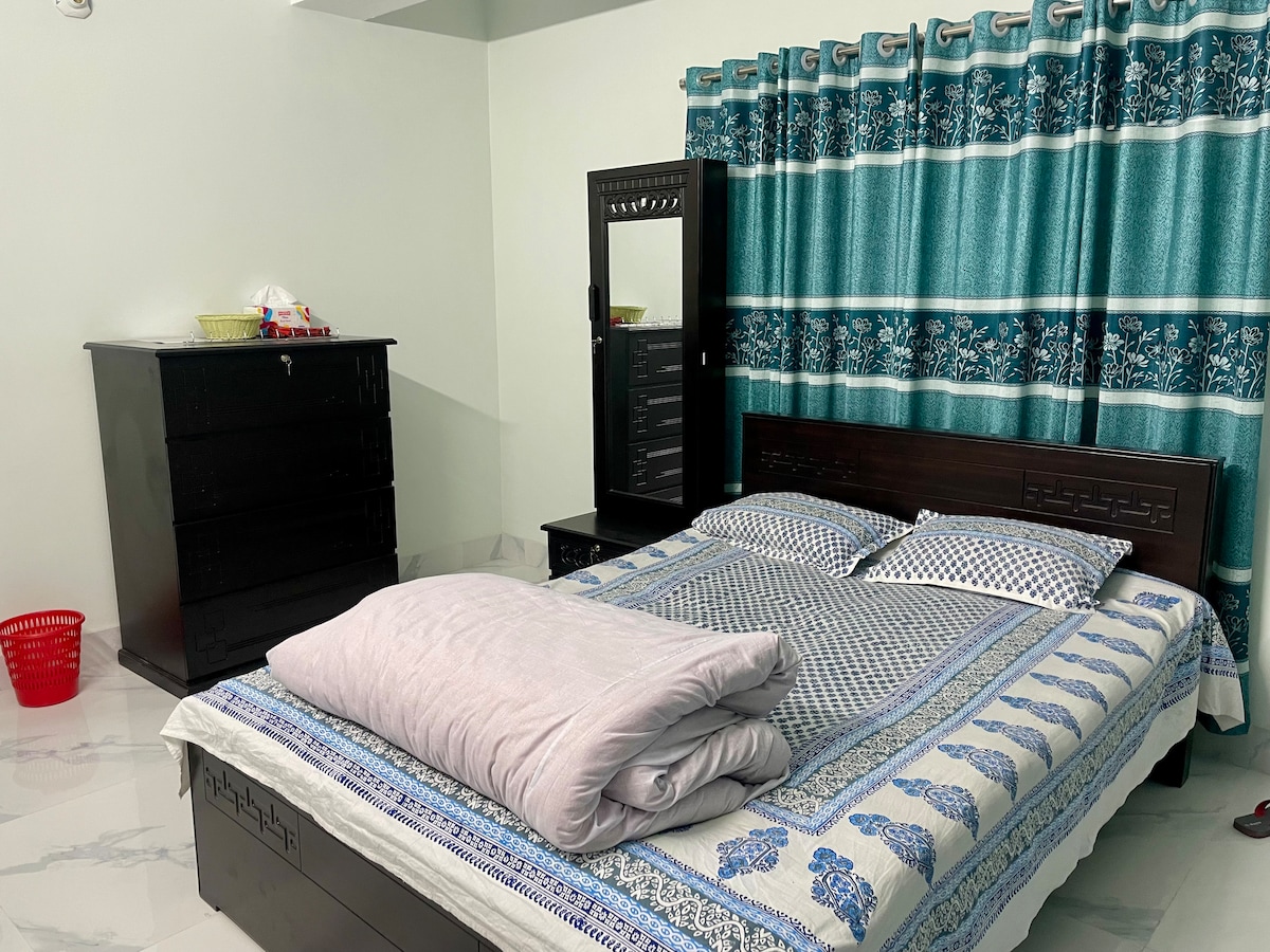 ラジシャヒの中心部、市役所の隣に滞在しましょう!ニューマーケット、鉄道駅、バスターミナルまで徒歩で行けます。一流レストランやショップに囲まれ、同じ建物内には大型食料品店もあります。3ベッドルーム、3バスルーム、フルキッチン、リビングとダイニングエリア、Wi-Fi、65インチUHDテレビ、2ベッドルーム、ダイニングとリビングルームにエアコンがある安全な建物です。1台分の駐車スペース、2つのエレベーター、全面が開いて新鮮な空気が入ります。快適で安全な滞在に最適です!
