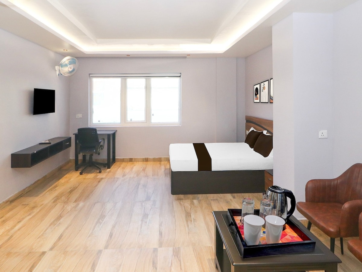 レビュー3件、5つ星中4.67つ星の平均評価ランチー デラックス AC キングルーム 専用バスルーム付き