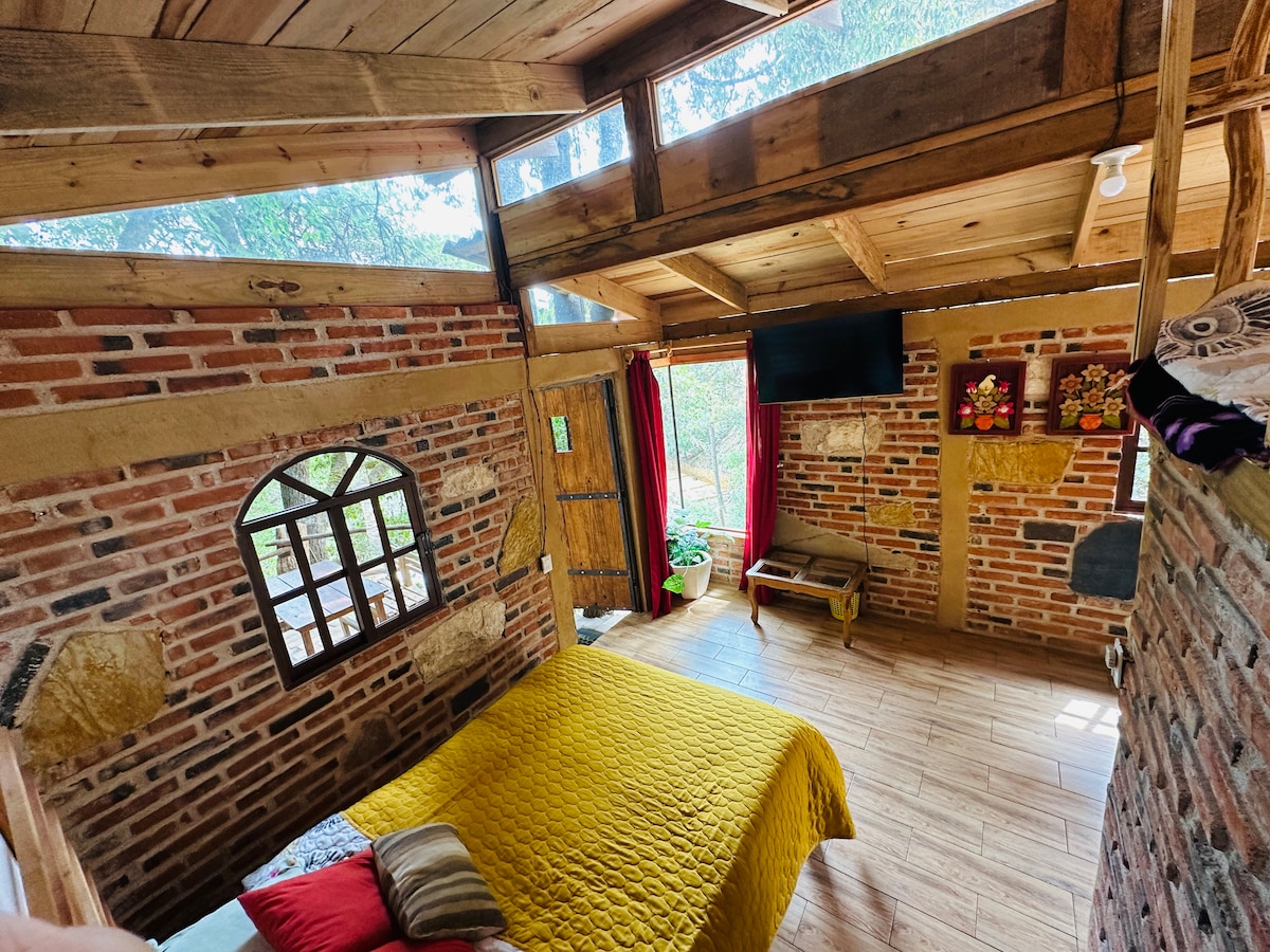 Escápate a nuestra cabaña mágica en Pinal de Amoles, Querétaro 🌲🏡. Un refugio acogedor en medio del bosque, con 🔥 chimenea interior, 🍖 asadores al aire libre y vistas espectaculares a la Sierra Gorda 🏔. Perfecta para desconectarte de la rutina, respirar aire puro y disfrutar de la naturaleza en total privacidad. Ideal para familias o grupos.