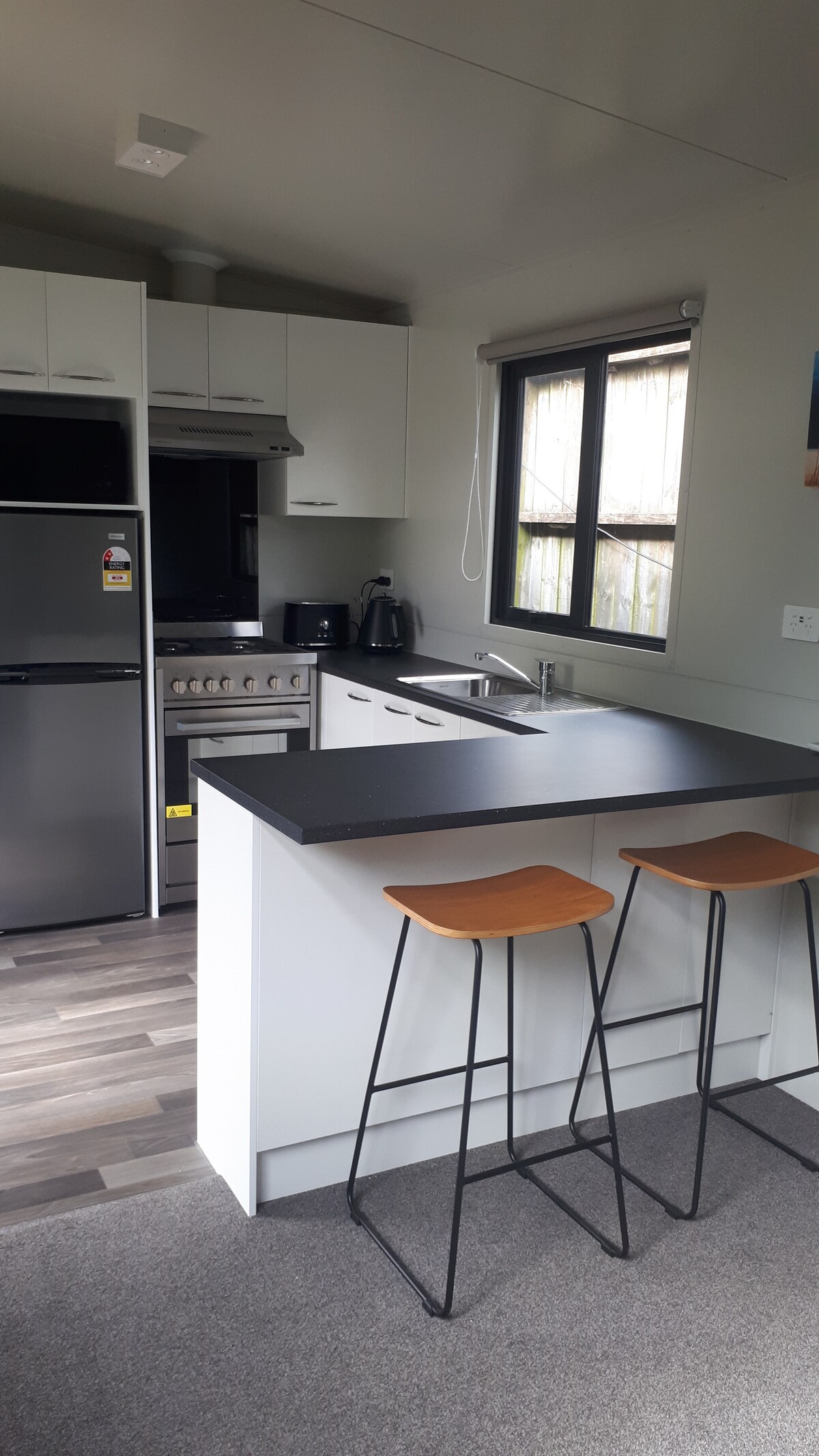 This very cute and comfortable self contained unit has a king size bed, with ensuite (shower and toilet). Includes basic kitchenette that has a microwave, air fryer, electric frypan, fridge, plus tea & coffee facilities. There is no kitchen sink, so not ideal for lots of cooking, but perfect for basic heat ups etc. Two minutes walk to beach, shops, cafés and restaurants. Off street parking, with bus stop outside.