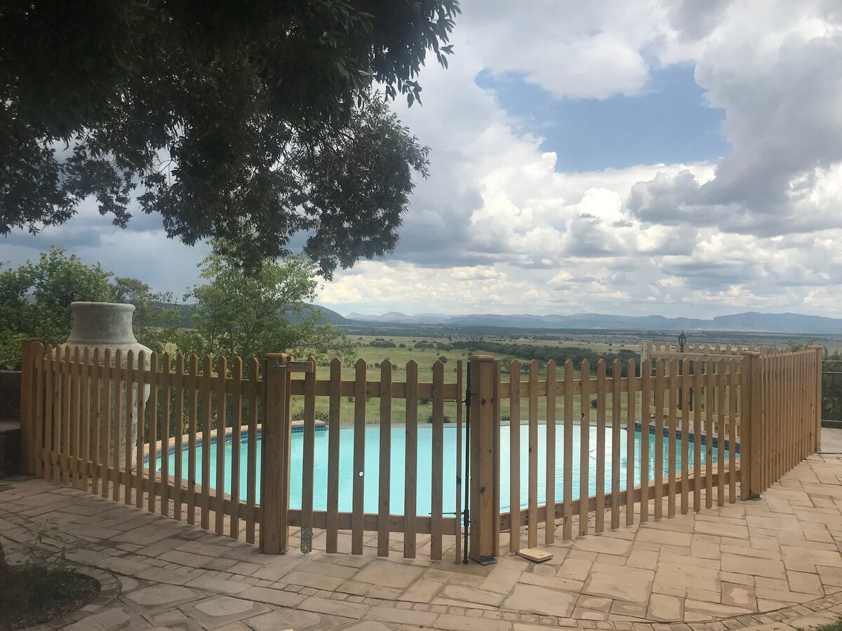 ヨハネスブルグからわずか2時間のウォーターバーグにある美しく装飾された5ベッドルームのロッジです。 全室エンスイートでプライベートで、専用のパティオがあります。 この家には設備の整ったキッチン、バー、ラウンジ、ダイニングルーム、焚き火台、そして昼寝をするための広いベランダがあります! この家は、プライバシーが確保され、素晴らしいリラックススペースとウォーターバーグ山脈の比類のない景色を楽しめる絶対的な宝石です。 マウンテンバイクやトレイルランニングに最適なロケーションです。または、広いパティオでくつろぎながら、動物を観察することもできます。