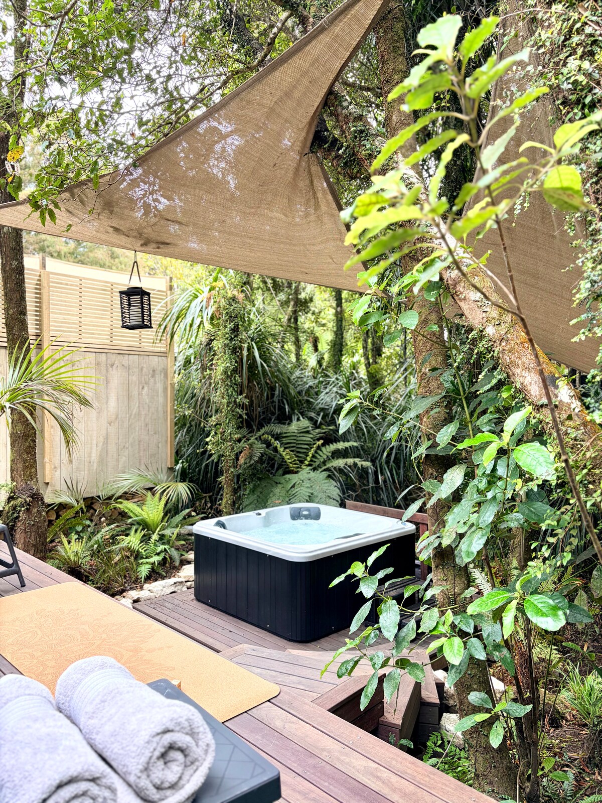 So much more than a place to sleep - toast marshmallows around a private fire, take a bike on the West Coast Wilderness trail, kayak on our little lake! The Nest is a stand alone self contained unit with outdoor bath/shower, close to but separate from the main house. Set on 15 acres of private land, Hurunui Jacks has the Nest and a glamping tent nestled in beautiful West Coast native bush. A small private lake, historic water race & the Kaniere River are on your doorstep.