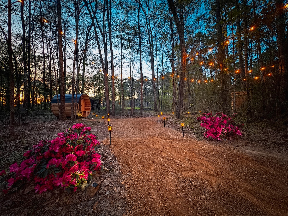 インディアン・クリーク貯水池から数分のキサッチーの森の中にあるこのユニークな宿泊先で、ゆっくりおくつろぎください。 自然ハイキング、カヤック、釣りをしたり、玄関のポーチのブランコやロッキングチェアでリラックスしたり、美しい夕日を眺めながらお好みの飲み物を楽しんだり、一日の終わりを星空に委ねる絶好の機会です! 背後に高い松の木があり、葉っぱがささやき、心地よい風が吹く、プライベートな隠れた湯船で太陽の光を浴びながら目を覚ましましょう。 そうです!とても素晴らしいです!