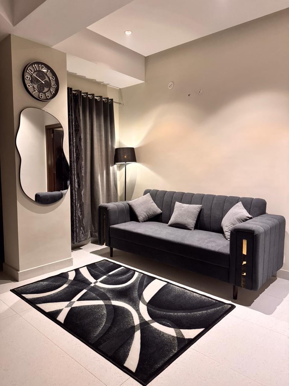The Grey Loft apartment, located in Bahria Town Phase 1, at discounted prices exclusively for our new guests! ~ Spacious and thoughtfully designed, it is a warm and welcoming space for families, couples, or business travelers. ~ The location is in the heart of Bahria town with Bahria Active right beside it ~ Guests will have easy access to a Pool, Sauna and Gym. (separately paid) ~ You can enjoy both relaxation and fitness during your stay. ~ Cleanliness is our top priority at the Grey Loft.