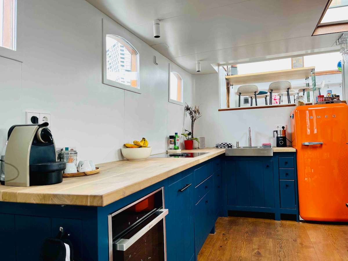 アムステルダムの歴史あるヨルダーン地区の中心部にある魅力的なハウスボートの隠れ家へようこそ! 居心地の良い家のような快適さを楽しみながら、水上生活のユニークな魅力を体験してください。 典型的なオランダのハウスボートにあるこの25平方メートルの快適なスイートには、専用バスルーム、小さな冷蔵庫、電子レンジ、ネスプレッソマシン、ティーケトル、スタイリッシュなインテリアなど、アムステルダムでの快適な滞在に必要なものがすべて揃っています。