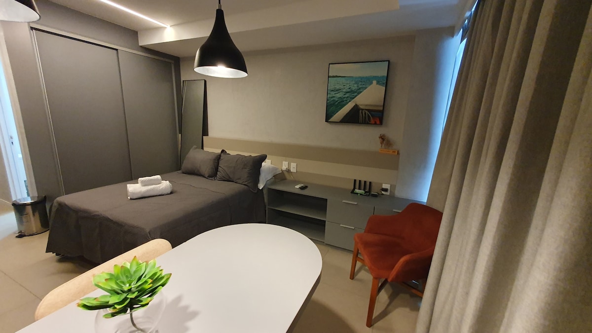 このユニークな場所には独自のスタイルがあります。 レシフェで働く人や数日楽しむ人に最適です。 ビーチ、主要ショッピングモール、レストラン、パン屋、カフェなどに近い、素晴らしいロケーションです。 当アパートには、快適なクイーンサイズベッドと補助ベッドが備わっています。 プレミアム寝具。 50インチテレビ。インターネット。 設備の整ったキッチン。食事や仕事に快適なテーブル。 駐車場、ランドリー、コワーキング、グルメスペース、プール、ジャグジー、ジムを備えたビル。