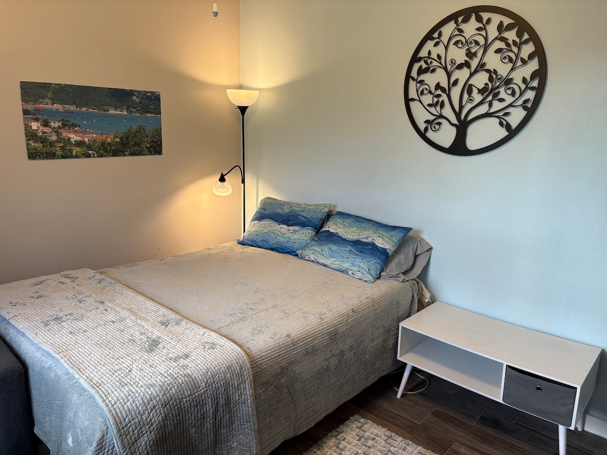 小さなキッチン、屋外ダイニングスペース、オーシャンビューを備えた広いワンルーム。「パラダイスファウンド」の豪華な1ベッドルーム(1388497 )と組み合わせて予約することもできます。すべてのユニットは個別に貸し出されています。このかわいらしく広々としたワンルームは、クルーズベイから数分のところにある静かで安全な住宅地にあります。清潔で明るく、小さなキッチンと専用バスルームがあり、美しい島を探索するのに最適なスタート地点です。海の眺めと、晴れた日にはセントクロイ島の眺め