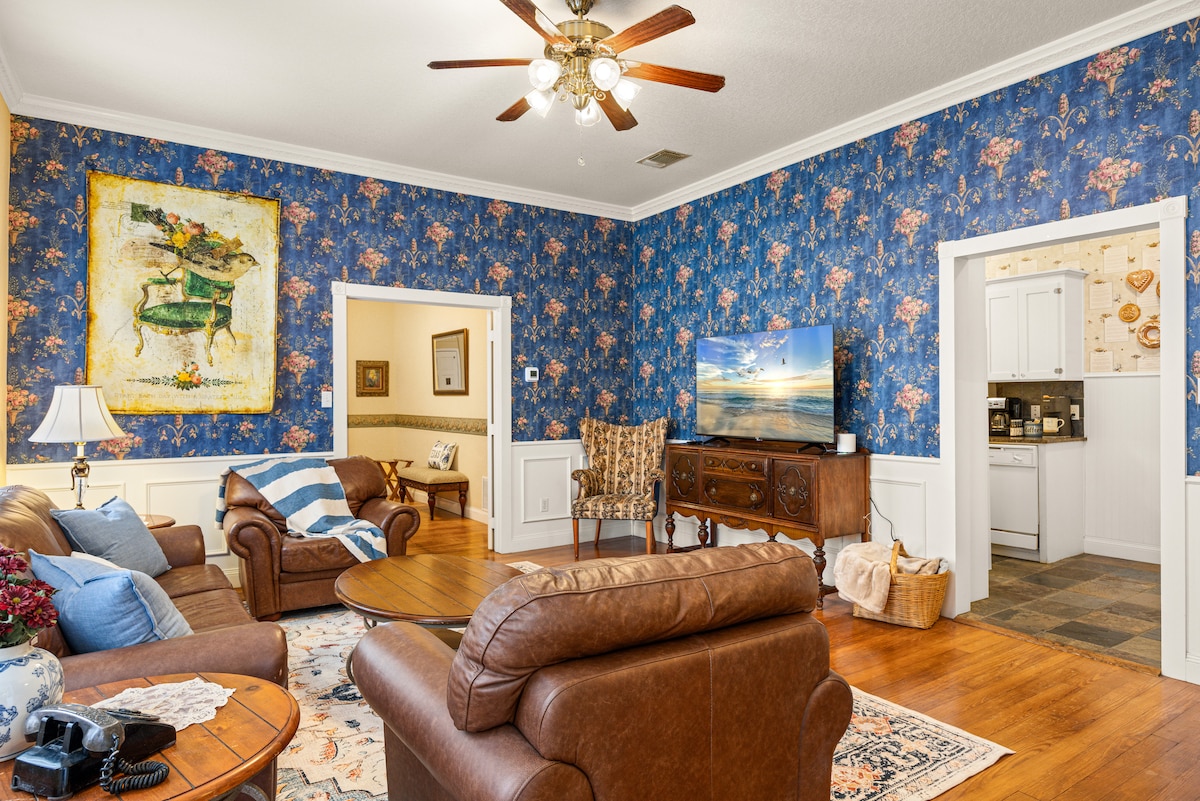 歴史的な教会の建物の2階にある美しく改装されたアパートで、ダウンタウンのマッキニー広場から1ブロック、たくさんのお店やレストランの近く、The Yardレストランの真向かいにあります。 駐車場とWi-Fiが含まれています。 アパートには、充実したキッチンとランドリールームがあります。 専用のベッドルームでは、豪華なキングサイズのベッドとユニークな格納式天井ファン/シャンデリアをお楽しみいただけます。 すべての収益は、外国の宣教活動を含むGracePointのミッションを支援します。