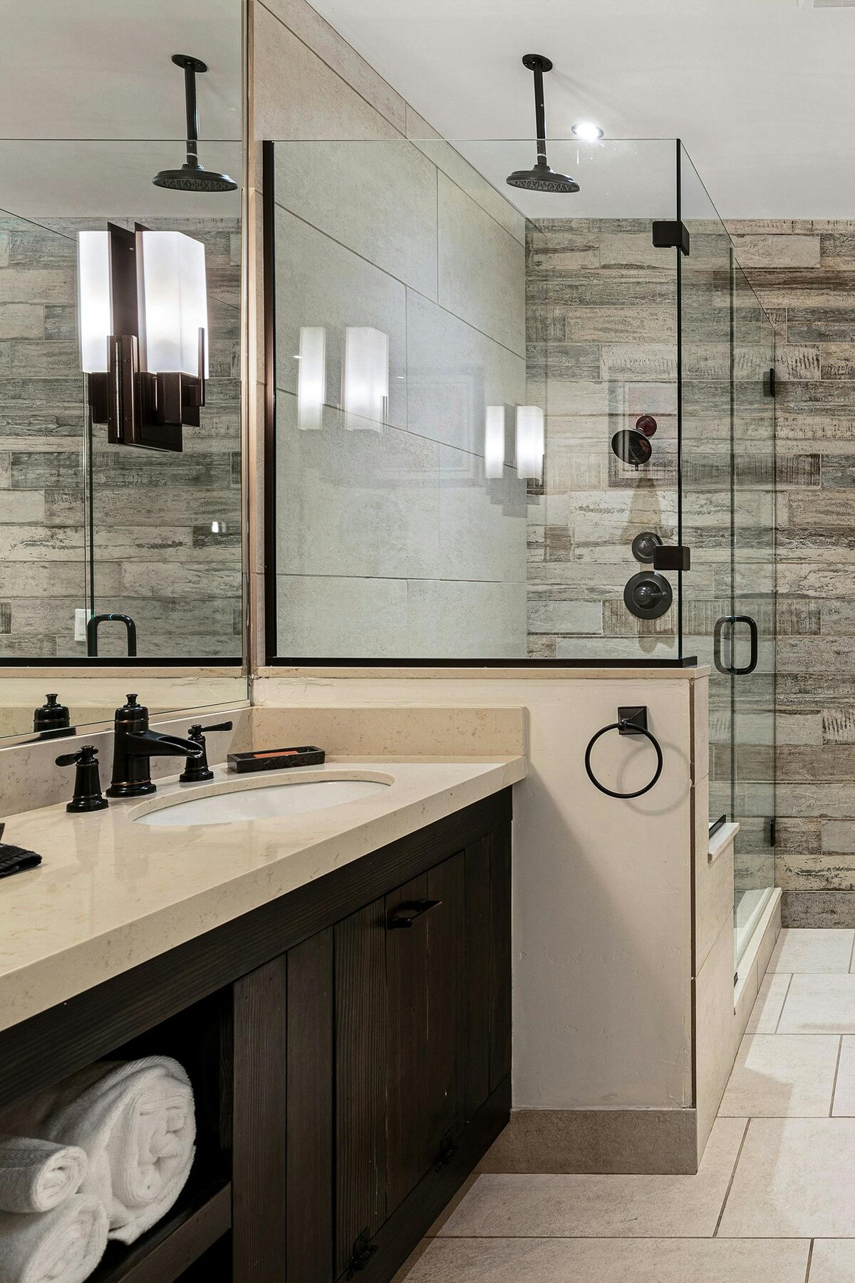 このクイーンの客室は、カスタムメイドの家具、ディストレスト・ドリフトウッドのフローリング、ヴィンテージの備品を備え、現代とミッドセンチュリーモダンが融合しています。カラフルなモザイクタイルとデュアルヘッドスパシャワーがこのバスルームを引き立てています。Serenityは1階にあり、外に専用の入り口があります。