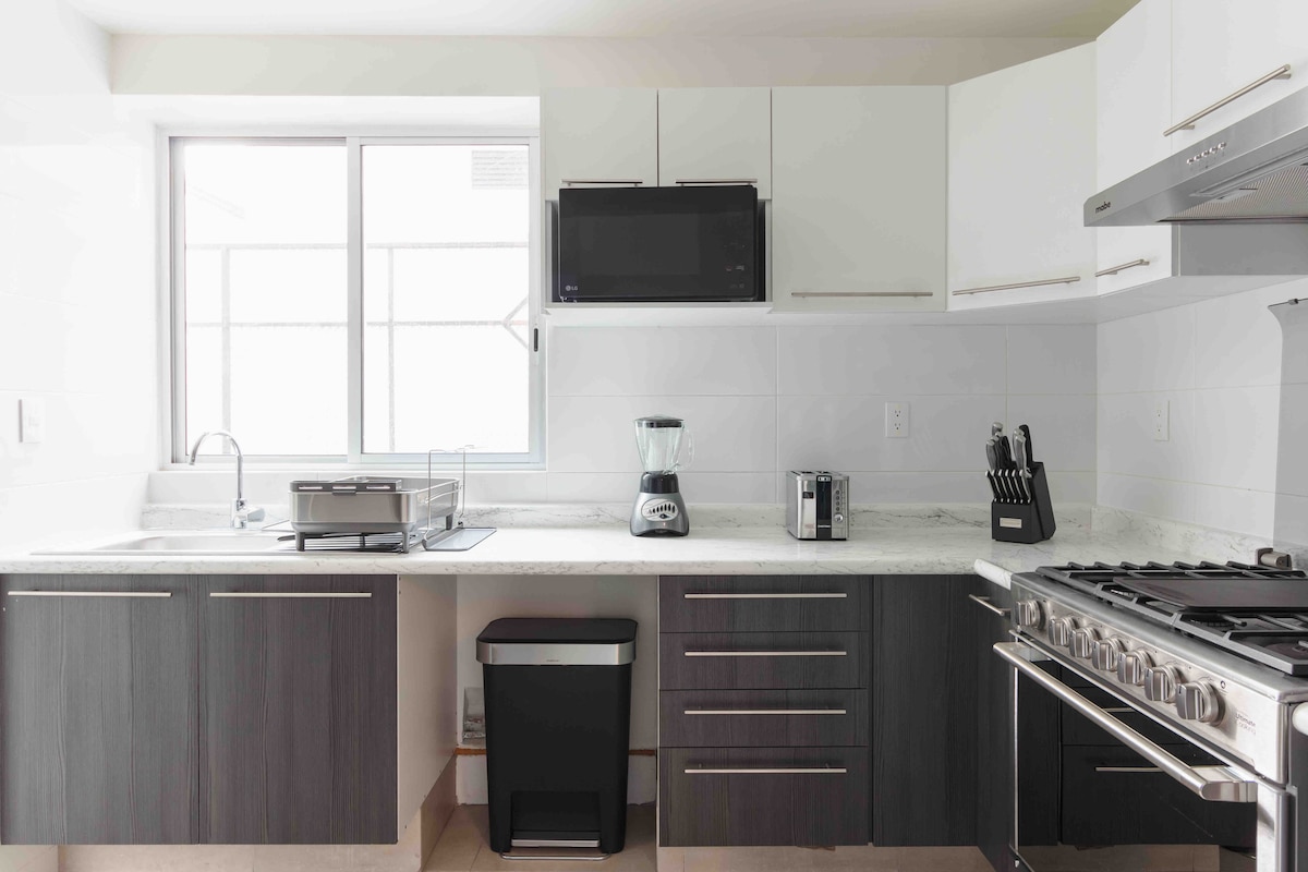 おしゃれなコロニア・フアレスの中心部にあるこのロフトから、メキシコシティの活気あふれる文化とナイトライフを🌆発見しましょう。 ラ・ロマ、コンデサ、ゲイゾーナロサ、ポランコからすぐの場所にあり、一人旅の方やカップル、友人同士に最適です。 24時間365日対応の警備、エアコン、洗濯機・乾燥機、高速インターネット、街の景色を楽しめるバルコニーなどのアメニティをご利用いただけます。 公共交通機関へのアクセスが良いため、街の探索も簡単です。 仕事でも遊びでも、このロフトはメキシコシティのあなたの家になります。