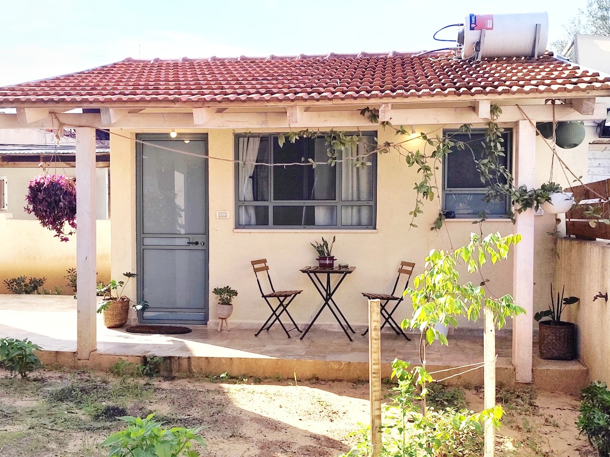 ギバト・アダにある静かな田園地帯のユニットで、1.2ドナムの敷地内にあり、別の家に住むフレンドリーな高齢カップルがいます。リラックスしたいカップルや小さなファミリーにぴったりです。 ユニットには、プレミアムキングコイルベッド、設備の整ったキッチン、コーヒーメーカー、テレビ、敷地内駐車場があります。 近くには、散歩や季節の水遊びに適したアダ川、徒歩圏内に公共プール、金曜日のファーマーズマーケット、ブティックワイナリー、スーパー、深夜営業のベーカリーがあります。