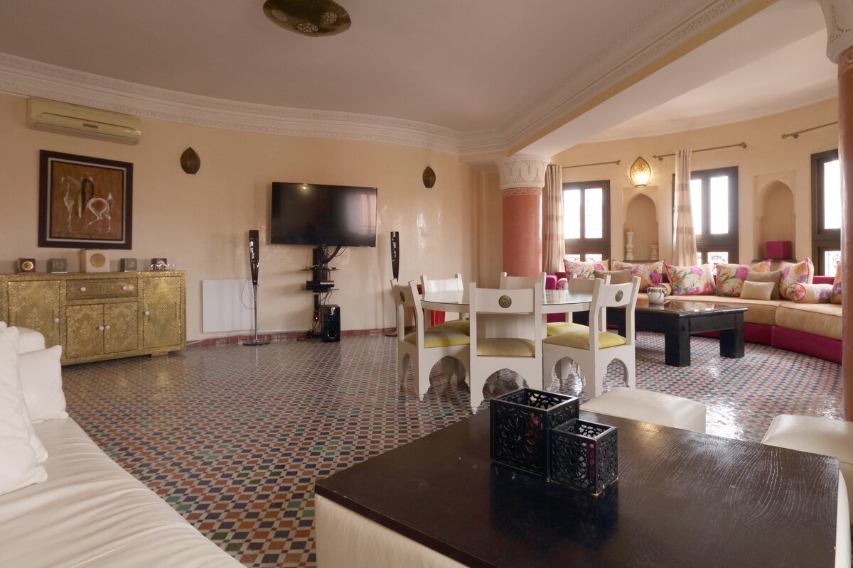徒歩圏内にショップやレストランがある活気あるエリアにある、グエリズの広々とした日当たりの良いアパートです。 このアパートは明るく、広々としていて(200平方メートル)、典型的なマラケシュスタイルです。