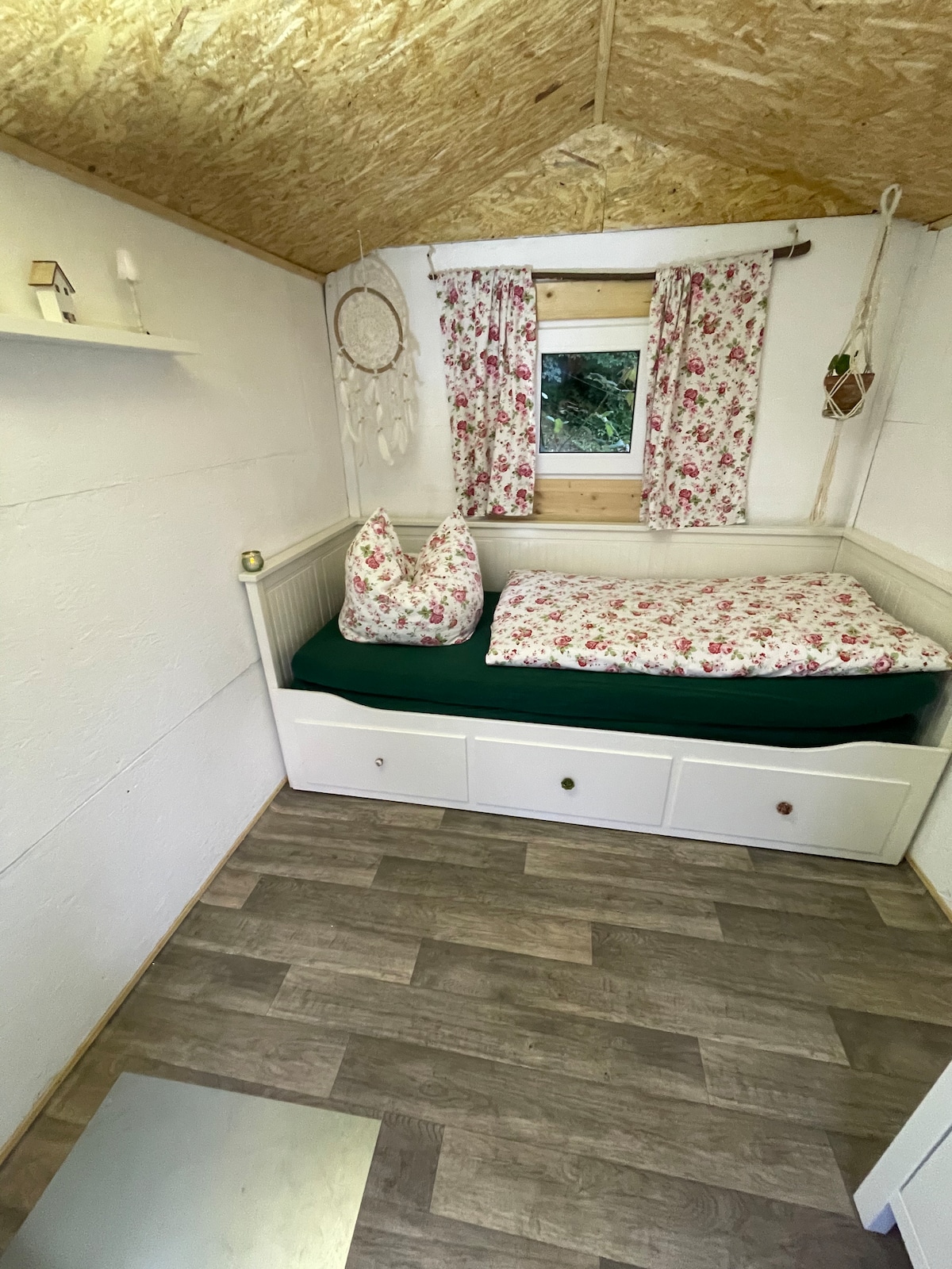 グッマースバッハにある明るくて美しい一軒家。 2名様用のダブルベッド(幅約1.50m)付きの寝室、ソファと2名様用のソファベッドを備えた広いリビングルームがあります。 バスタブとシャワー付きのバスルーム。 キッチンはありませんが、食器、Senseoコーヒーメーカー、冷蔵庫、電気ケトル、トースター、グリル付き電子レンジが備わっています。 無料駐車場、物件内または物件前にご用意いたします。