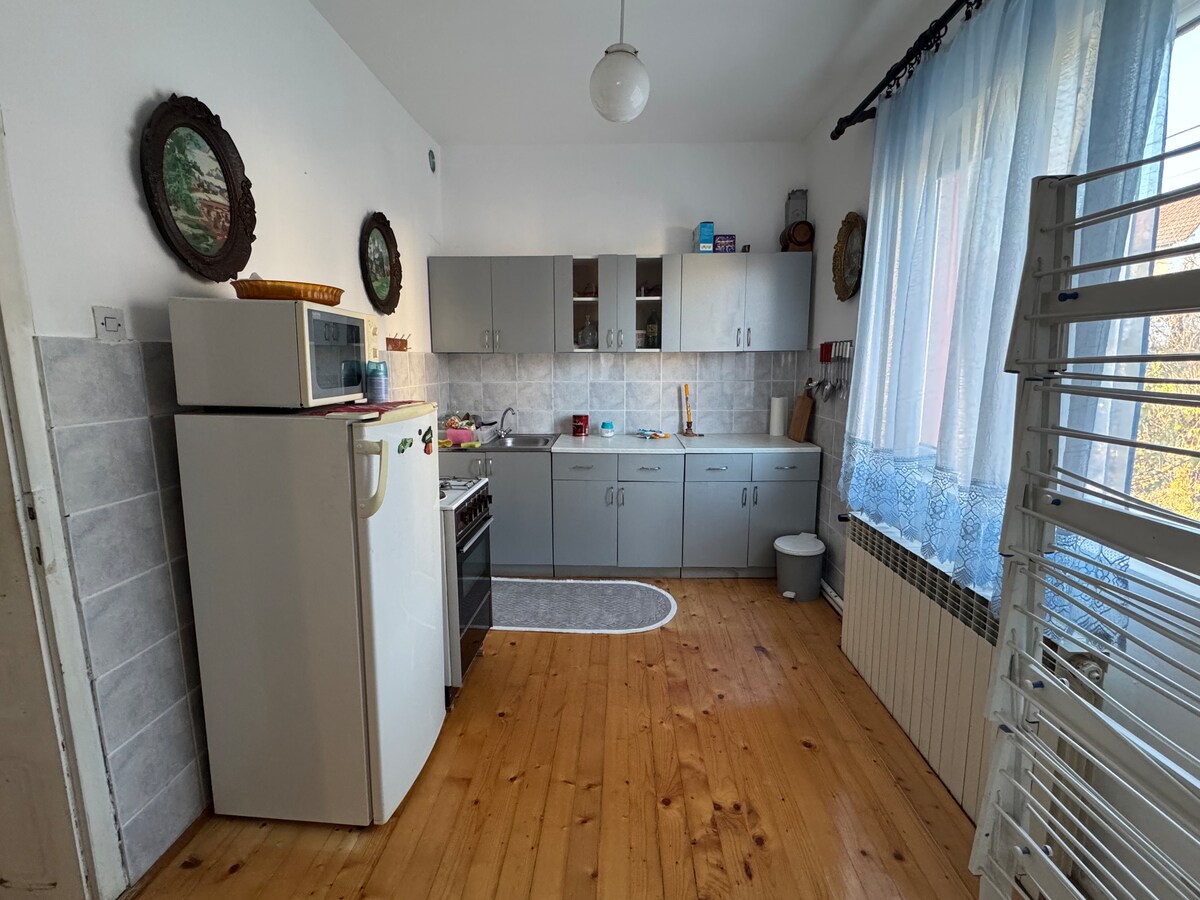 アパートメント・オグレダルツェは、寝室を備えた51平方メートルの2ベッドルームアパートメントです。寝具やタオル、家電などが完備されています。 クルシェヴァツ市の中心部近くの静かな地区にある建物の1階にあります。 近くには、ビッグショッピングセンター、ロダ市場、ディスショップ、スロボディシュテ記念公園、子供向けの遊園地であるサレングラード恐竜公園などがあります。 市内中心部からは約1000メートル、徒歩で約7〜8分、車で2〜3分です。 建物の前の公共駐車場は無料です