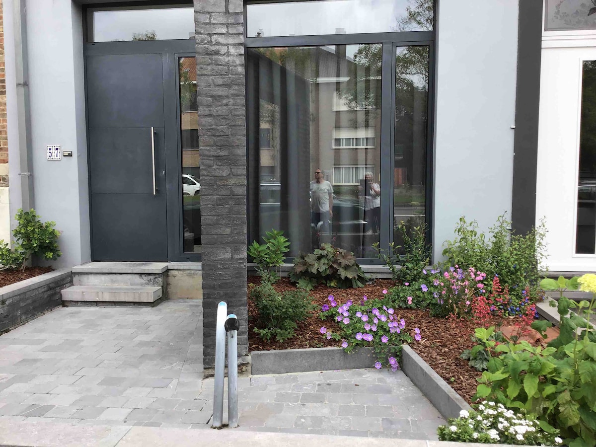 Just outside Bruges medieval city centre and close to Damme, we offer you a fully equipped flat with two bedrooms, a private bathroom, a toilet and an open kitchen. The flat is bright, spacious, modern and separate from our private home.There's free covered parking space. We have six bikes available! In the garden, there is a private space just for you! The neighbourhood is green (forest & canal between Damme and Bruges) and quiet. Enjoy the surroundings only 4 km from the centre of Bruges.