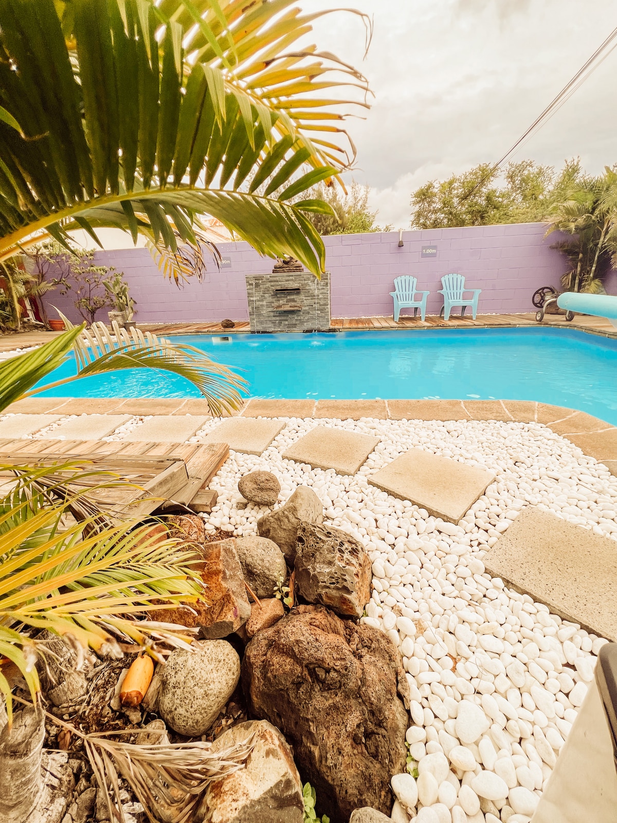 A few steps from the Lagoon, located in the residence "Le Vacoa", comfortable room on the ground floor, with its bathroom and toilet.<br>The room is equipped with air conditioning, a refrigerator and a flat-screen Tv.<br>You can enjoy my heated swimming pool with our charming Balinese lounge areas as well as my shared outdoor kitchen with wood-fired barbecue.<br>Ideally located on the west coast, not far from the lagoon, you can explore the beauty of Reunion from Le Vacoa.