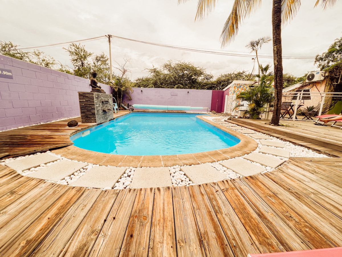 A few steps from the Lagoon, located in the residence "Le Vacoa", comfortable room on the floor in duplex, with its bathroom and toilet.<br>The room is equipped with air conditioning, a refrigerator and a flat-screen Tv.<br>You can enjoy my heated swimming pool with our charming Balinese lounge areas as well as my shared outdoor kitchen with wood-fired barbecue.<br>Ideally located on the west coast, not far from the lagoon, you can explore the beauty of Reunion from Le Vacoa.