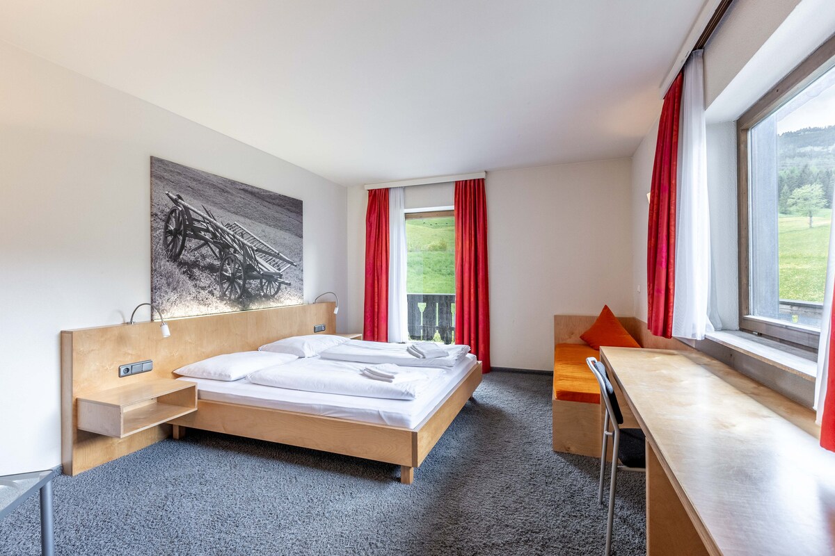 レビュー6件、5つ星中3.5つ星の平均評価ゲレンデに面したバスルームとバルコニー付きのトリプルルーム