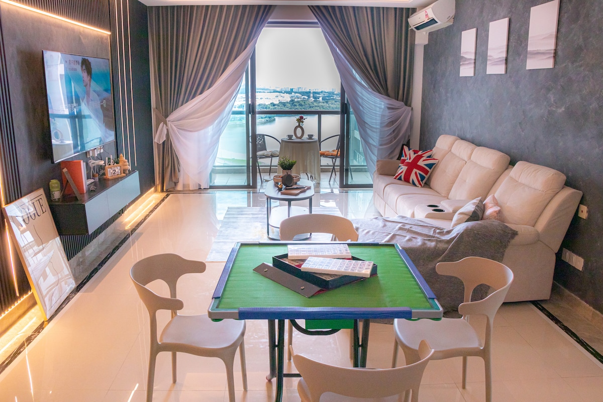 R9 HomestayのR&F Seine Region 4BR Pool View & Seaview Getawayへようこそ| 14 ~16名様! R&Fセーヌ地域(フェーズ2 )にあるこの真新しい家は、素晴らしい海の眺め、モダンな設備、3つのバスルームを備えており、家族旅行や友人との集まりに最適です。 14 ~16名様まで宿泊可能なこの広々とした4ベッドルームアパートは、専用バルコニー、一流の設備を備えており、JB税関まで徒歩圏内です。 忘れられない滞在を今すぐ予約しましょう!