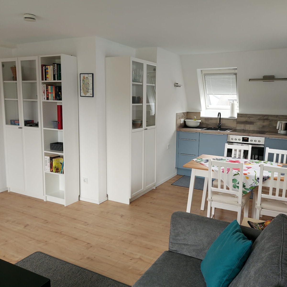 アイフェルでの休暇、ドイツで最も人気のある遊園地「ファンタジアランド」への訪問、ケルンの見本市(30分)またはコマンデュール城でのパーティー(800m)の後のアパートメントへの短い道のり?週末旅行、イベント、または短期休暇など、どんな機会でも、私たちの場所なら、静かでスタイリッシュな雰囲気と最高のロケーションをお楽しみいただけます。テラス、バーベキューグリル、駐車場、設備がすべて揃っています。到着して、リラックスして、気分を良くしてください。お待ちしております!