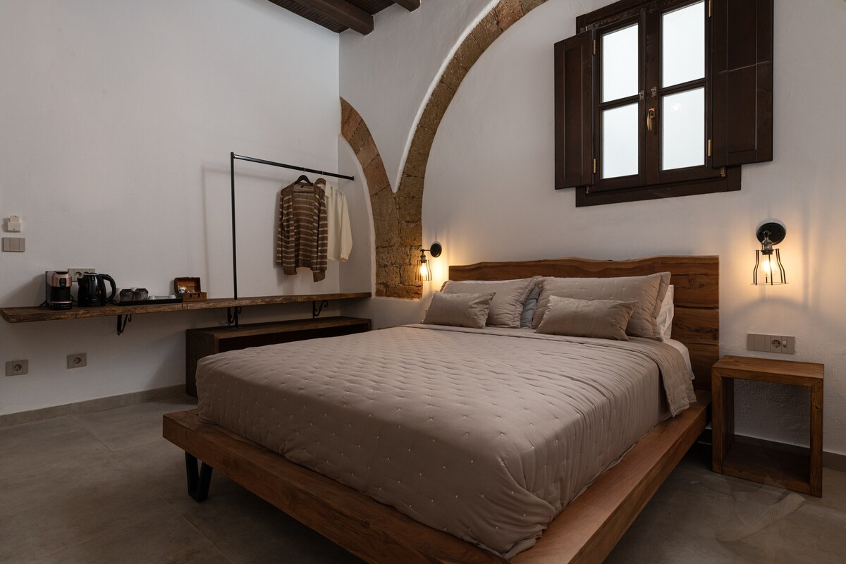 COCO-MAT®によって100%天然素材のみで作られたベッドとマットレス。 このお部屋にはクイーンサイズベッド、ミニバー、シャワー付きバスルームがあります。 すべての客室には、ギリシャの土地からの100%天然素材とO.Live®のオリーブオイルを使用したアメニティが備わっています。 ベッド:クイーンサイズベッド1台 部屋の広さ:15㎡