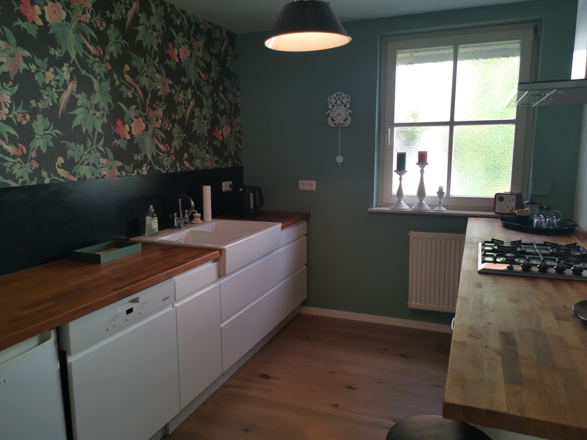 バート・キッシンゲンの温泉エリアにある歴史的なヴィラへようこそ。 110㎡の敷地内には、2つの寝室、ソファベッドのあるリビングルーム、キッチン、バスルーム、ゲスト用トイレ、テラス、庭があります。Wi-Fi、テレビ、専用駐車場が利用可能です。 ハイライト:ファミリー向け(ベビーベッドとハイチェア付き)、犬歓迎🐾、充電ステーション(タイプ2、11 kW)。静かで中心部に位置し、スパ施設まで数分です。 「私たちの家は、すべてのお客様にとって、静けさ、温かみ、良い思い出の場所であるべきです。」