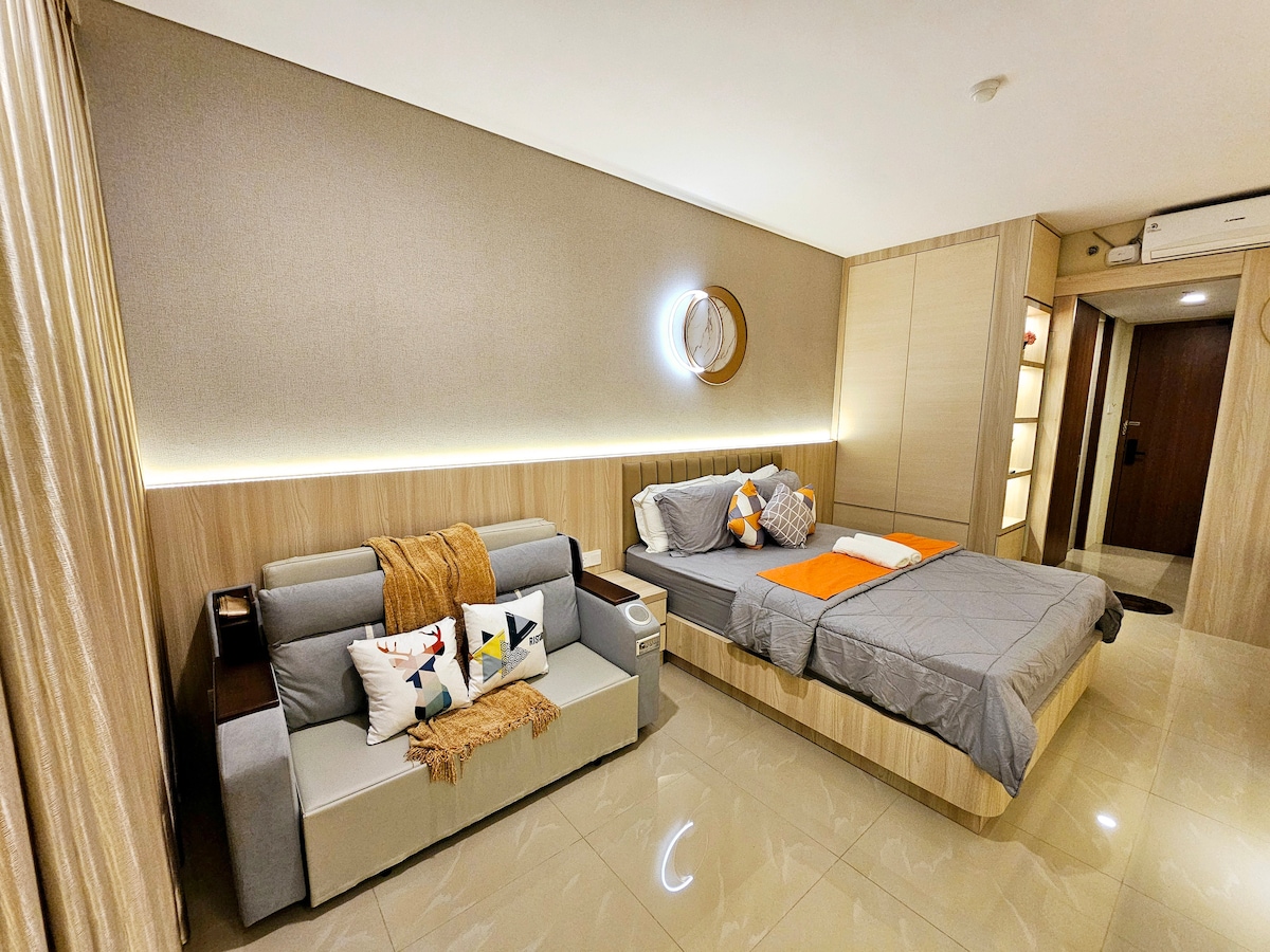 バタムの魅力的なアパートへようこそ。快適さとスタイルを提供し、居心地の良い隠れ家を求める個人やカップルに最適です。活気ある名古屋エリアに位置し、ショッピングモール、フードコート、カフェに簡単にアクセスできます。公共交通機関は徒歩圏内にあり、街を探索するのに便利です。 ビジネスでもレジャーでも、私たちのアパートはバタムで快適に過ごすための温かい滞在先です。