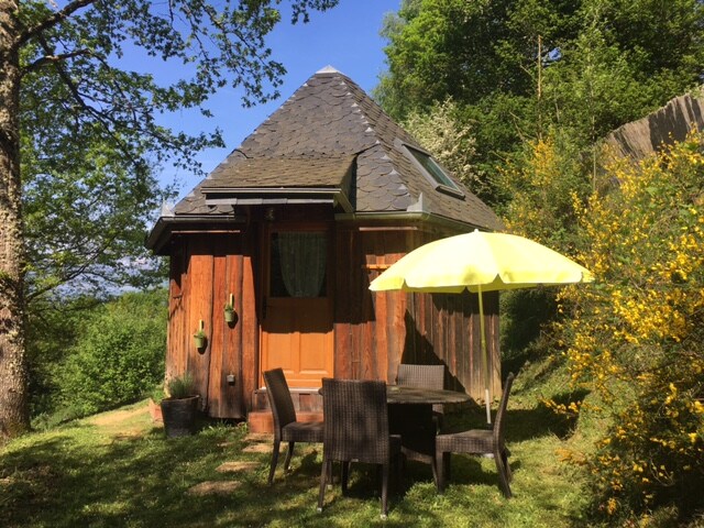 ココン「ル・ミラバ」 カップルの週末に理想的なココン。食事を作るための小さなキッチンと快適なシャワールーム。はしごで登る二階ベッドが、特別な魅力を与えています。 階段は小さく、入り口は狭く、屋根の下のベッドがキャビンのような効果を与えています。コタタイプのシャレー。 メインの建物から数歩離れており、独立しています。共用ラウンジにアクセスすると、Wi-Fiにアクセスできます。緑の中で過ごす数日間に最適です...