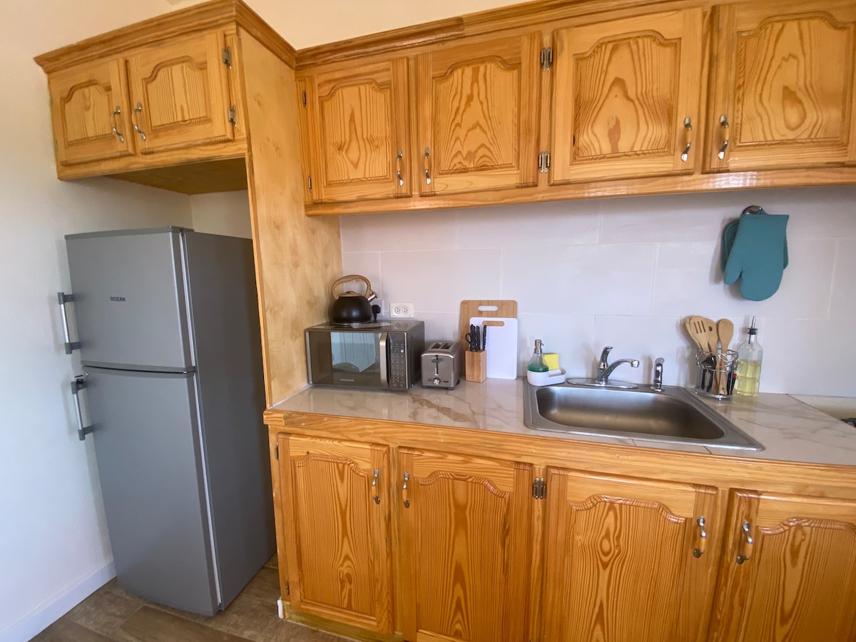 明るく広々とした1ベッドルームのアパートで、ヴィラの素晴らしくのどかなビーチから5分足らずで、ビーチサイドで様々な食事を楽しめ、地元の名物料理から家族連れに人気の料理まで、あらゆる好みに対応しています。 地元のダイビングスクールでは、カリブ海の海賊のロケ地などの地元の観光スポットや、滝、火山、植物園などの近くの自然美景スポットのチャーターも提供しています。共用キッチン付き。空港から15分です。