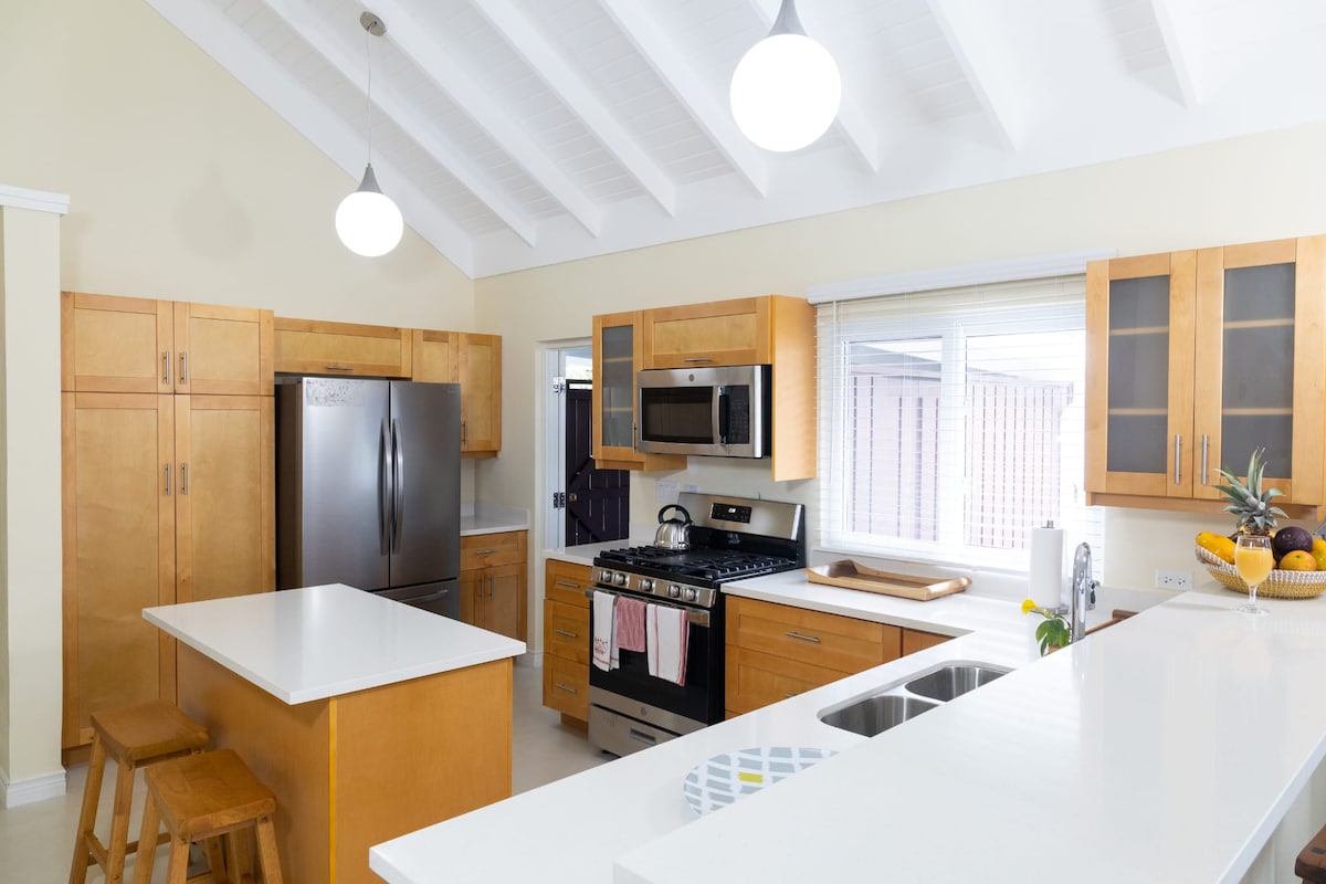 ハリケーン「メリッサ」の後、電気と高速Wi-Fiが完全に復旧しました。Taylor'DEscapeへようこそ。わずか1分の場所にプールがあり、素敵な景色を眺められる快適なパティオがある静かな宿泊先です。カップル、ご家族、一人旅、リモートワーカーに最適です。フルキッチン、高速Wi-Fi、ダイニング/ワークスペース、洗濯機・乾燥機、24時間年中無休のセキュリティ、近くのスーパーとデリをお楽しみください。プールサイドでリラックスしたり、パティオで朝のコーヒーや夜のワインをお楽しみください。週割や月割もご利用いただけます。