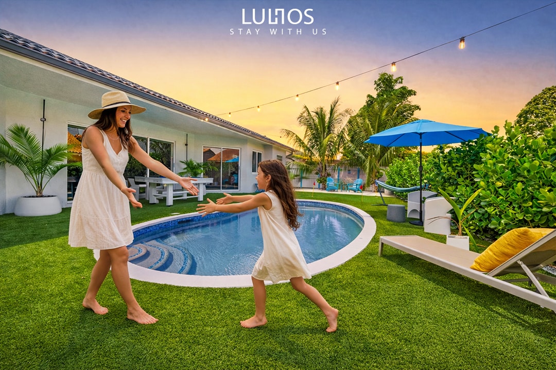 マイアミのヴィラで、ほかにはない贅沢なひとときをお過ごしください。温水の塩水プール、高級マットレスを備えた5つのエレガントな寝室、マットブルーと温かみのあるオーク材仕上げのデザイナーズキッチンが特徴です。専用のミニビーチでリラックスしたり、プールサイドでゲームを楽しんだり、ファイヤーピットのそばでくつろいだりしましょう。あらゆるディテールが、気取らない贅沢と快適さを演出します。