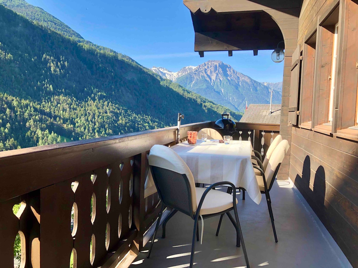 あなたは安らぎと休息をお探しですか? 山、自然、文化がお好きですか? 私たちの家でくつろぎのひとときをお過ごしください! 私たちはあなたを温かく迎え、喜んでおもてなしさせていただきます。 ホストファミリー アントワネット、マルクス、ジョバンニ アパートは、海抜約900メートルのビッシュ村の「エブネ」という集落にある一戸建ての家の中にあります。 ビッシュは、オーバーヴァレーにある小さく居心地の良い村です。アレッチ地域(ユネスコ世界自然遺産)の麓、ナータース/ブリッグから南に5キロ、東に位置しています。 南に向かうと、シンプロン峠はイタリアのドモドッソラに直接つながっています。 1階には、アパートの隣にある広い庭園(ダブルベッドとシングルベッド、ソファ、読書用椅子、WELAN-TV、設備の整ったキッチン、シャワー付きバスルーム)があり、ヴァレーの山々の美しい景色を眺めることができます。庭の家具やデッキチェアが、太陽と安らぎを浴びながら、屋外でのんびりとした時間を過ごすことをお勧めします。 公共交通機関を利用することで、車なしで到着することができます。徒歩でお店、郵便局、銀行まで約15分、バスで5分です。 時間を楽しむ方法は無限です。 多様なスポーツ施設(ハイキング、クライミング、サイクリング、スキー、水泳など)文化施設(博物館、劇場、季節に応じた文化イベント)や自然(ユネスコ世界遺産アレッチ、ビントヴァル自然公園など)がすぐそこにあります。 私たち自身も旅行が大好きで、旅慣れた家族として、ゲストの皆様との交流を楽しみにしております。私たちはドイツ語、英語、フランス語、イタリア語を話します。 ご希望であれば、地元の自然派の食材を使った豊かな朝食をご用意いたします。 必要に応じて、登山やハイキングのガイドを手配し、特別なご要望にお応えできるよう努めます。 最も重要なのは、お客様が快適に過ごし、リラックスしていただくことです!