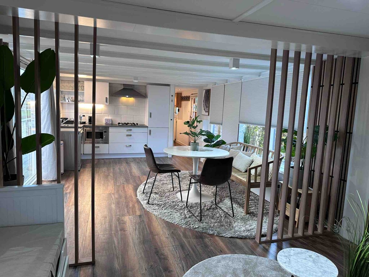 街のオアシス、広々としたハウスボート(駐車場込み)