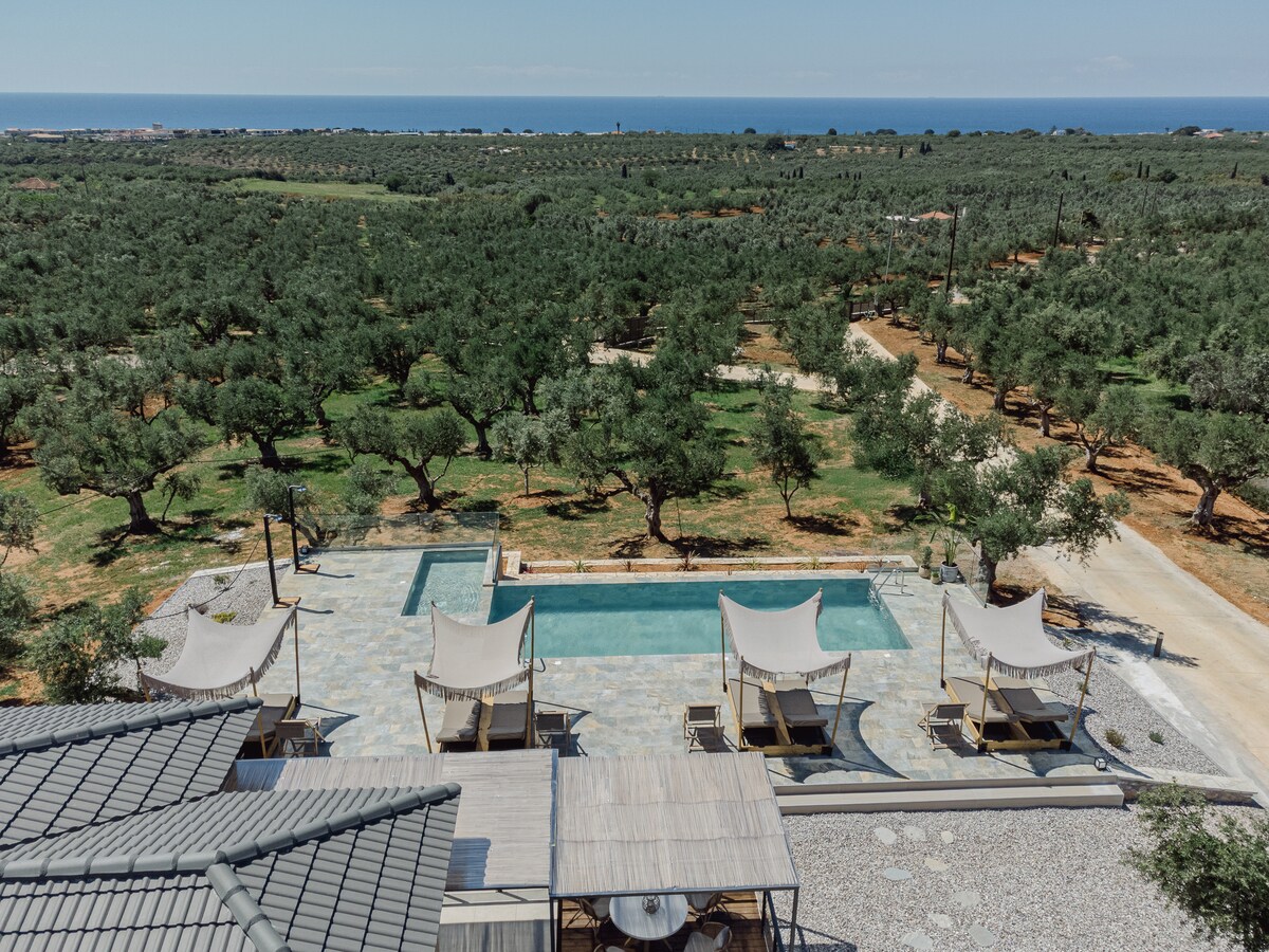 Liostasi Luxury Suites is a peaceful retreat nestled in a 6,000m² olive grove in Messinia, just 2 km from the beach. The property consists of four spacious 40m² residences, each with a private entrance and an elevated 20m² balcony offering uninterrupted views of the Ionian Sea, the mountains, and the surrounding natural landscape. Guests also have access to a big shared swimming pool, perfect for relaxing and cooling off amidst nature.