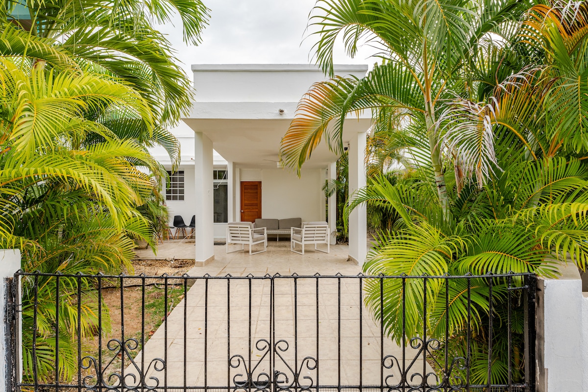 天井が高く開放的なシャッターが付いた広々としたお家で、風通しがよく涼しい滞在ができます。 大きな客間にはエアコンがあり、各寝室にもエアコンがあります。バッテリー付きのソーラーパネルは、停電の心配がありません。広いバルコニーには、食事をしたり、リラックスしたり、美しい夕日や海の景色を楽しむためのスペースがたくさんあります。中心部に位置するこちらの宿泊先の近くには、家族で訪れたい場所がすべてそろいます。最も近いビーチは徒歩6分(正確には1000フィート!)で、ダウンタウンプラザは徒歩10分です。