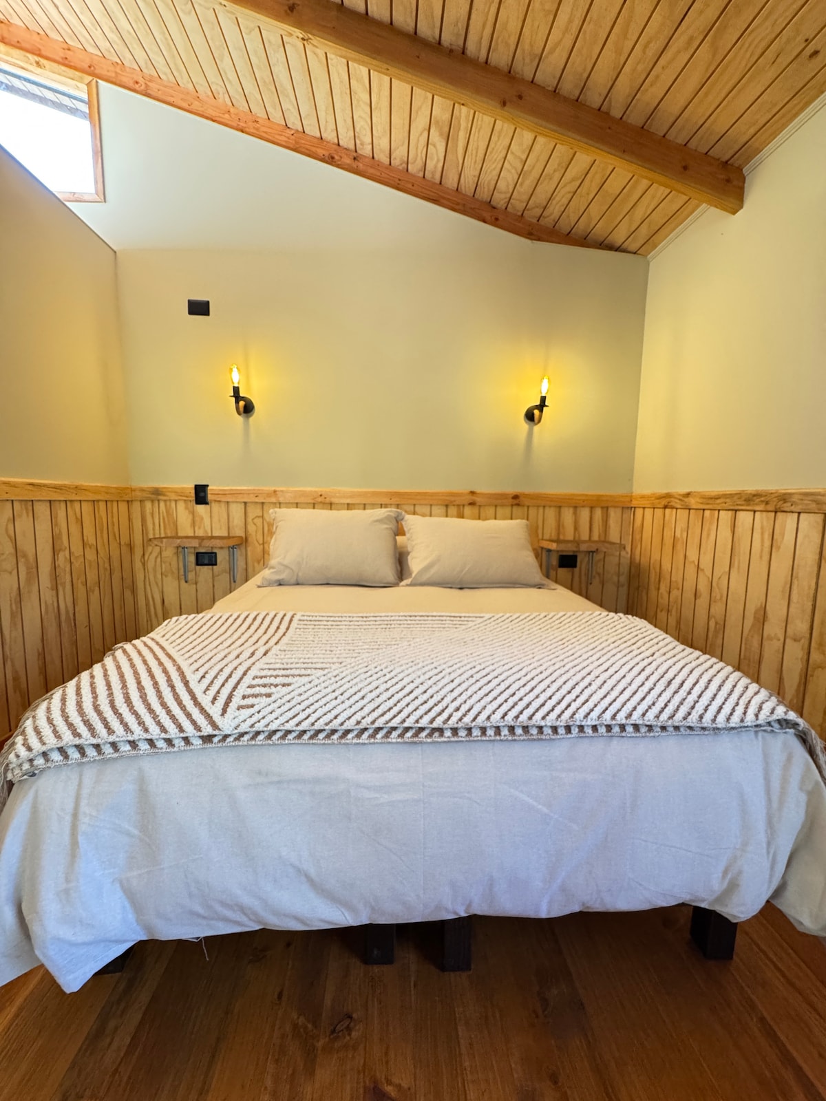 IG @casavacacionalpanguipulli(casavacacionalpanguipulli) チリ南部の居心地の良いキャビンで、冒険と休息の日々を計画しましょう。 ロス・リオス州パンギプリの市街地から4kmの場所に位置しています。完全に独立した区画にあり、緑豊かな自然に囲まれています。 3名様にぴったりの広々とした快適なプライベート空間です。 この場所の静けさがきっと気に入るはずです!