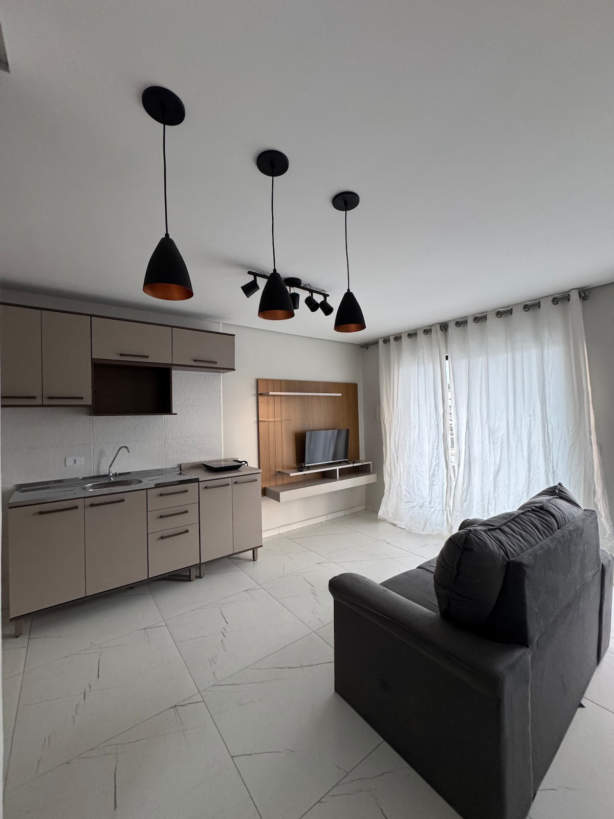 Acomodação prática e confortável, composta por 1 quarto, 1 banheiro e sala e cozinha conjugadas, ideal para até 2 hóspedes.