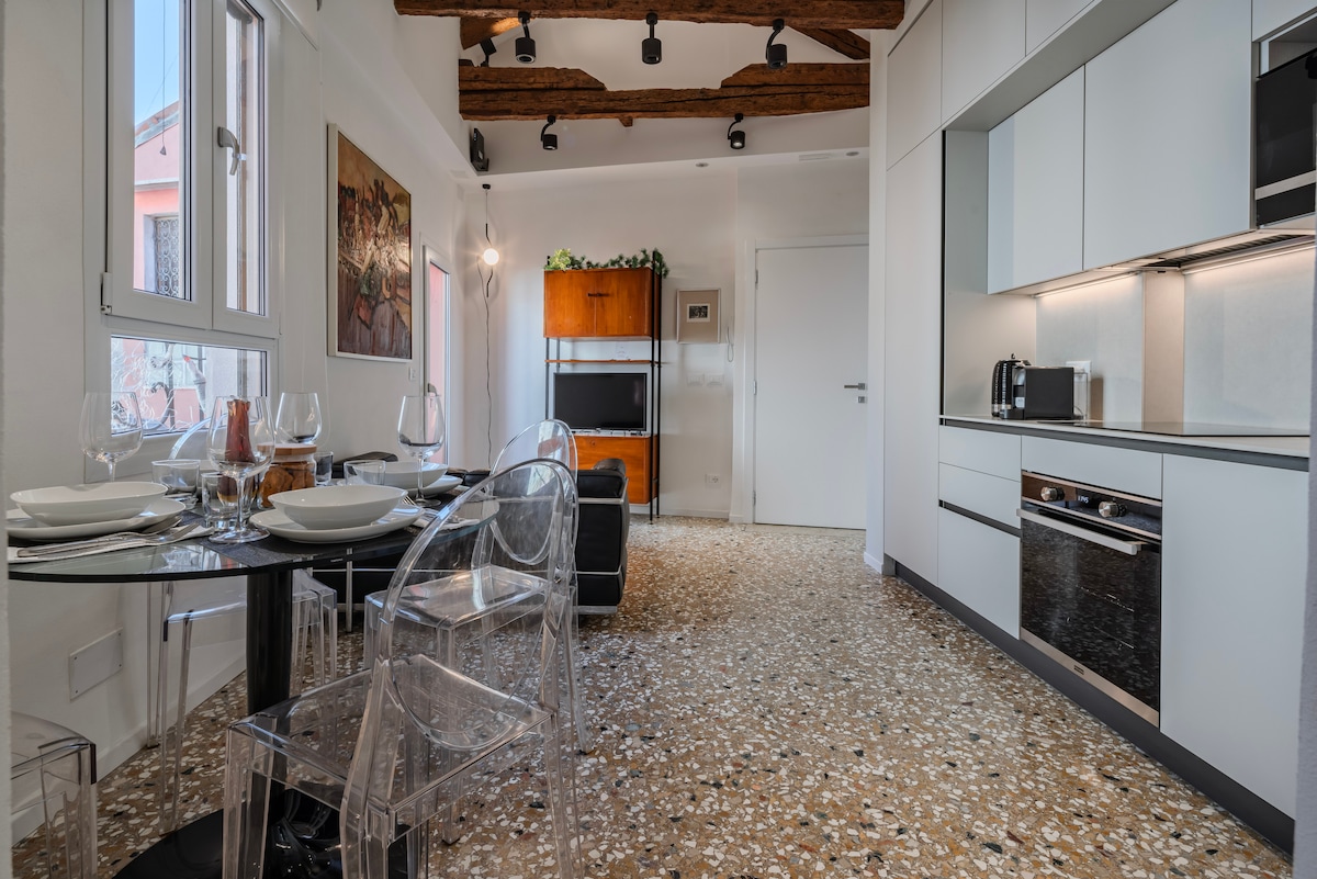 寝室、リビングルーム、キッチン、シャワー付きのバスルームで構成されています。家具はモダンで、慎重に選ばれています。アパートはヴェネツィアの中心部に位置しています。窓からは、特徴的なゴンドラが通り過ぎるのを楽しむことができます。 寝室、キッチン兼リビングルーム、シャワー付きのバスルームで構成されています。家具はモダンで、慎重に選ばれています。The apartment is located in the heart of Venice; from the windows you can enjoy the characteristic gondolas passing by.