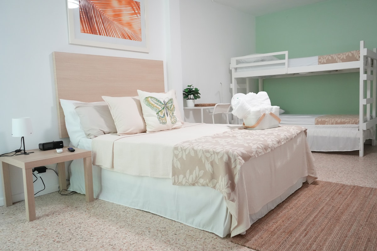 ユニークでファミリー的な宿泊施設。爽やかで居心地が良く、静かです。 ジャグジー、ハンモック、アームチェア、ダイニング、バーベキュー、洗濯機、乾燥機が備わっています。5名様用のお部屋、クイーンサイズベッド1台、ダブル層ベッド1台、快適なソファベッド、設備の整ったキッチン。ビーチからわずか1分の海に面したお部屋です。近くの観光スポットには、エル・ユンケ熱帯雨林、ルキリョ・ビーチ、乗馬、バイオルミネセント湾、美味しい食事処などがあります。お待ちしております!