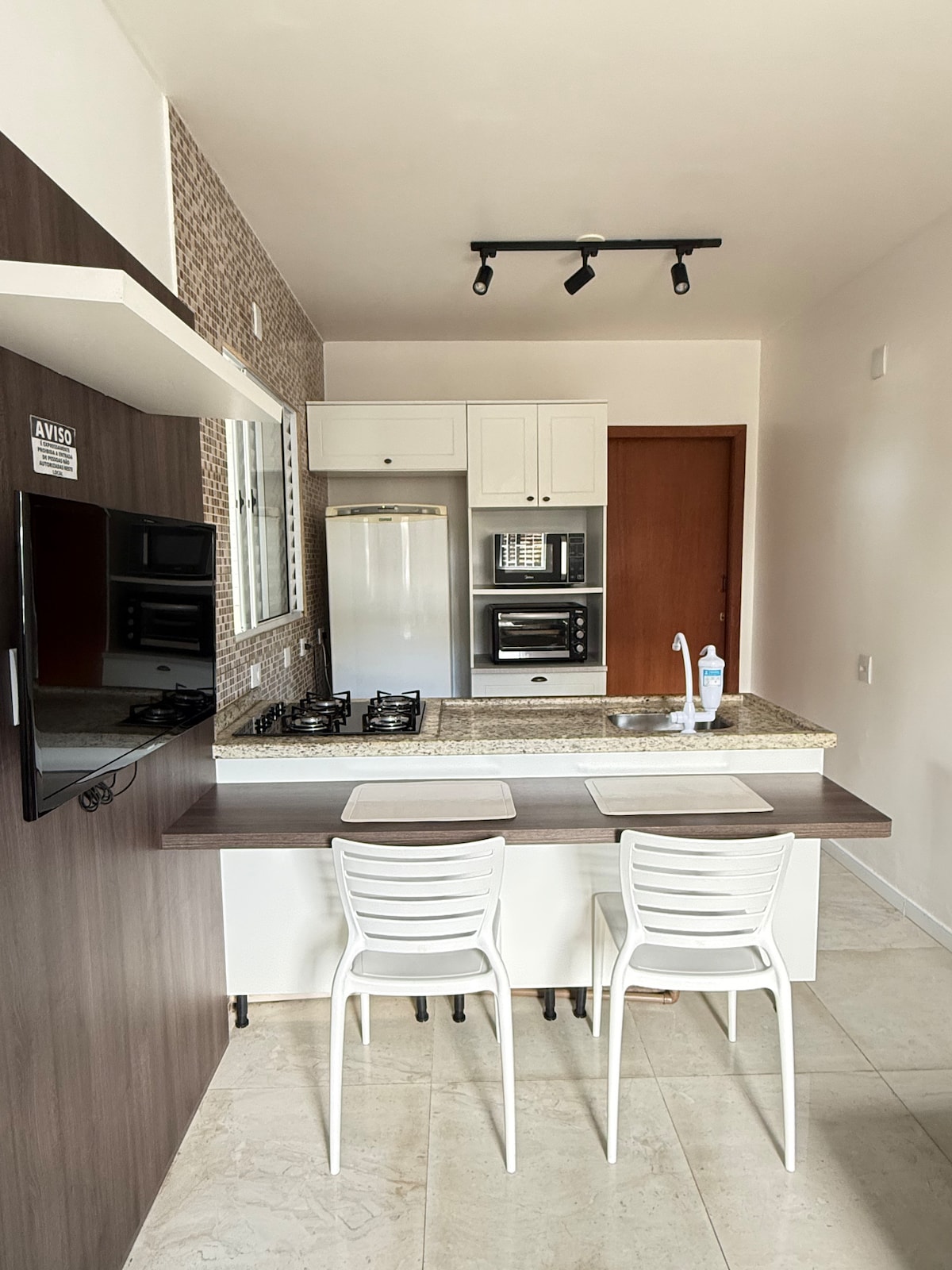 住宅地にある快適で居心地の良いワンルームで、立地もとても良いです。 UFSCとUDESCに近く、ダウンタウンから9 kmです。 静かで落ち着いた静かな場所で、よく眠ることができます。 屋外エリアもあり、リラックスしたり、コーヒーを飲んだり、日光浴ができます。 きっと気に入るよ! フルキッチン、ダブルベッド、お湯付きシャワー、ワードローブ付きシャワー、ワードローブ、ARコンディショニング、Wi - Fi、ケーブルテレビ、ケーブルテレビ、ベッドリネン、毛布、タオル、タオル、ヒーターが備わっています。