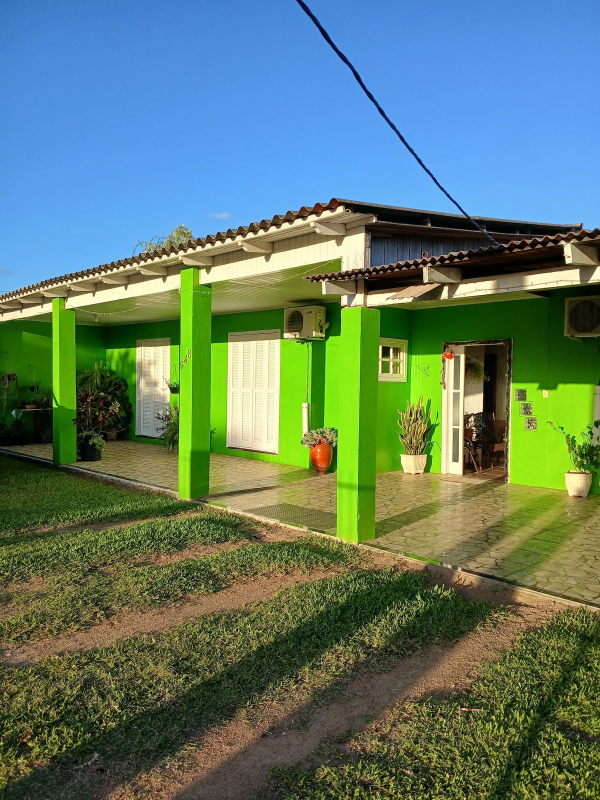 Casa inteira, pátio dos fundos compartilhado. Local limpo e aconchegante, Ideal para passar a noite durante sua viagem da Argentina para o litoral de Santa Catarina. Espaço seguro, com piscina, ar condicionado nos dormitórios e também na sala de estar. Localização: bairro familiar e tranquilo, a cerca de 2 minutos em carro do entroncamento da BR 290 com a BR 471.