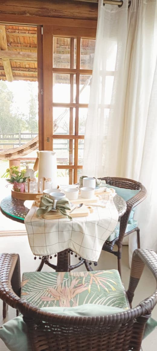 サンタクルス・ド・スルの田舎にあるレカント・アレグレ農場に位置するコテージで、市内中心部から15kmの場所にあります。 自然との触れ合いに最適な、心地よい場所です! キャビンには以下のものがあります。 - 暖炉のあるリビングルーム - デュプレックスタイプの冷蔵庫を備えたキッチン - 調理器具・食器類完備のキッチン - エアコン完備のお部屋、寝室、リビングルーム - ガス暖房付きシャワーと蛇口 - ガレージ - バーベキューセット - キャンプ用コンロ - ハンギングチェア - Wi-Fi - フロアファイヤースペース - デッキ付きダム