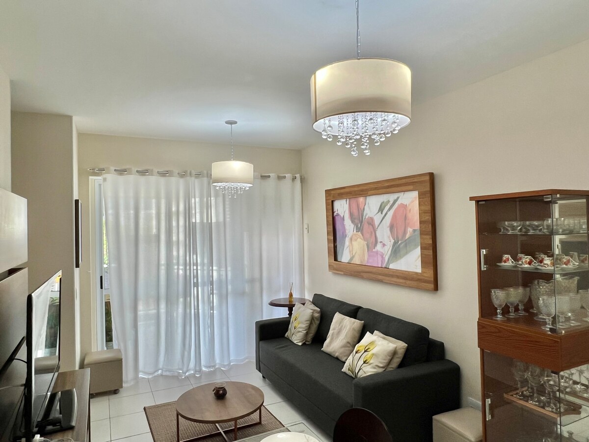 ミニキッチン付きの1ベッドルーム/スイートの素晴らしいフラット。バラ・ダ・ティジュカの最高のロケーションにある清潔で居心地の良い環境。 緑とプールの景色、Wi-Fi、Claro Net TV、ネスプレッソ、クイーンサイズベッド1台、シングルサイズソファベッド1台、スプリットエアコンを備えた静かな環境。 レストラン、カフェテリア、プール、スポーツコート、コンベンションセンター、ホール、ミニマーケット、ランドリー、ジム、24時間対応の受付とメンテナンス、無料のビーチアクセスフェリー、つまり完全なセキュリティを備えたフラットです。