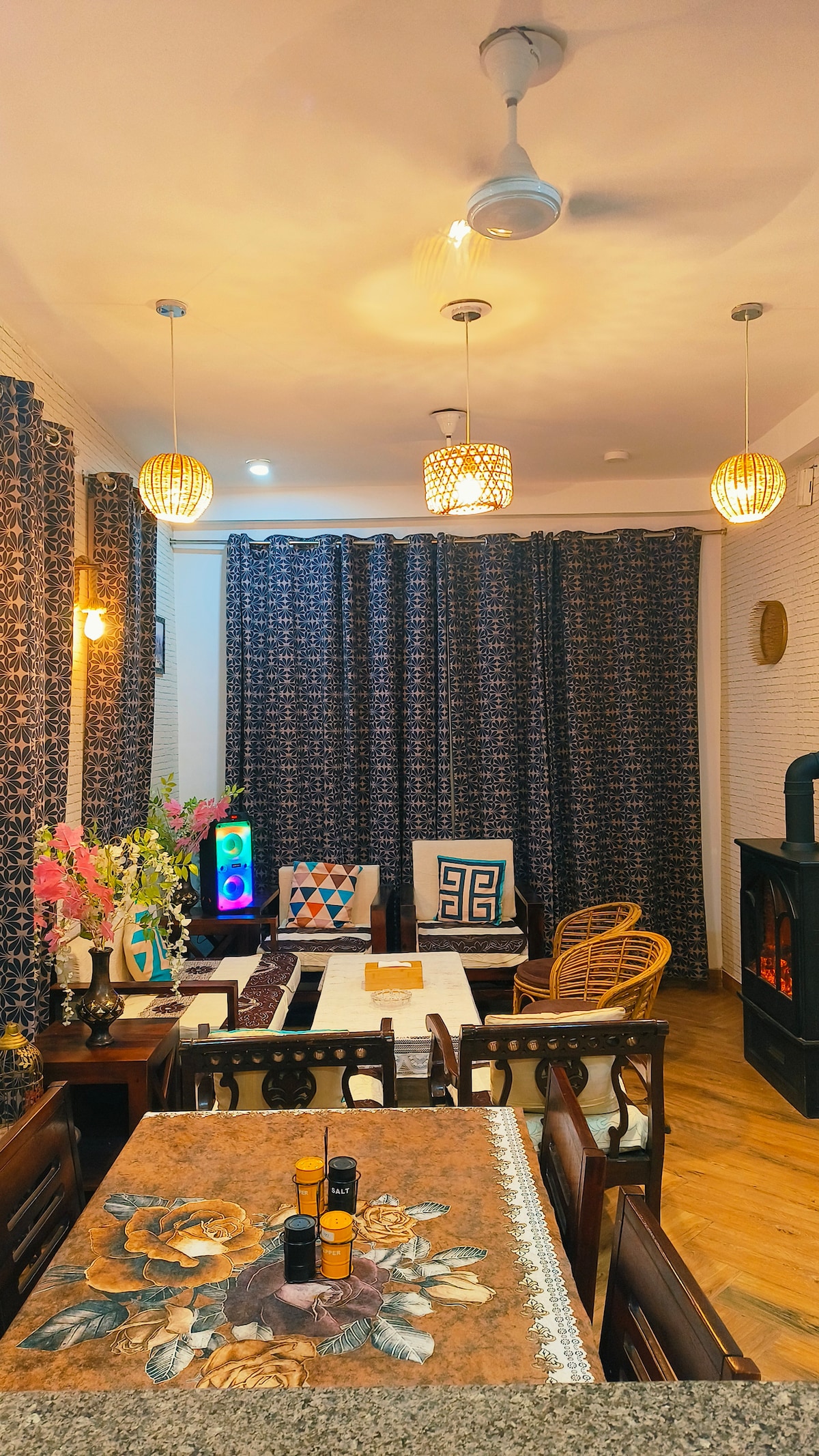 A calm and cozy 1BHK—perfect for couples, small families, and peaceful stays. A very comfortable, pet-friendly stay for families and friends with free parking and lift access. The apartment features a spacious, well-equipped living room, a functional kitchen with a fridge and stovetop, and one separate rooms with clean, private attached bathrooms. Guests can enjoy cooking, relaxing, and listening to music with loved ones.